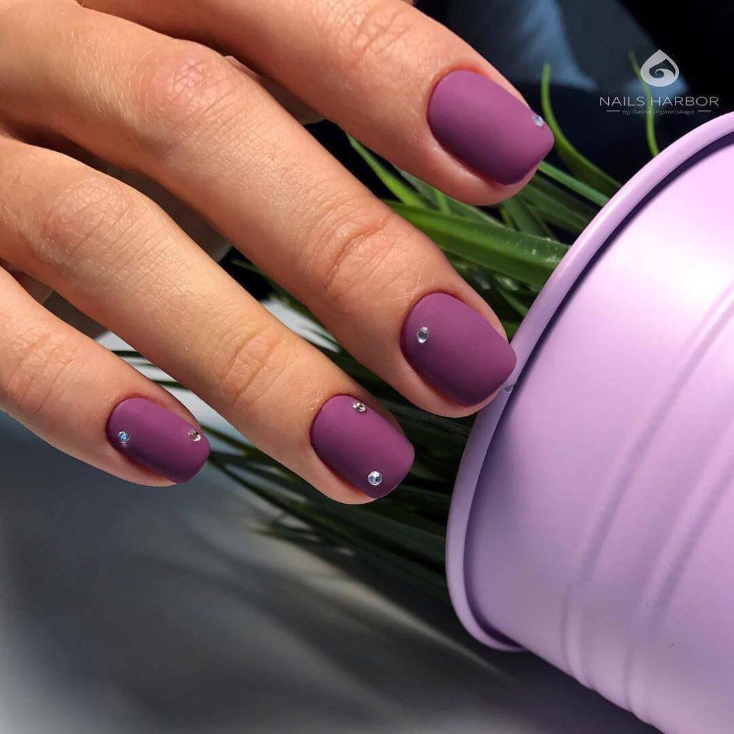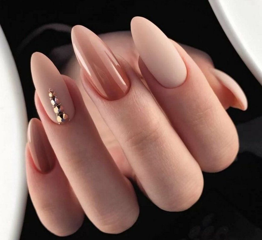 Маникюр с камнями просто шикарно смотрится в матовом исполнении, такой дизайн не оставит равнодушным никого. В осеннем маникюре сезона 2020 камни и стразы наносятся на ногтевую пластину в виде красивого узора на один-два пальца, или в виде мелких камушек на всю ногтевую пластину, тоже в виде акцента. Идеи для вдохновения, смотрите на фото ниже: