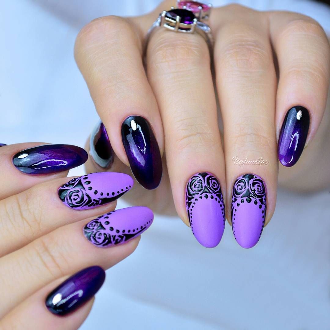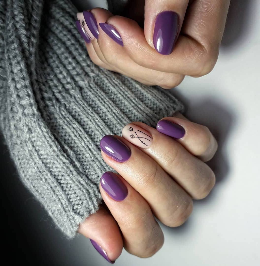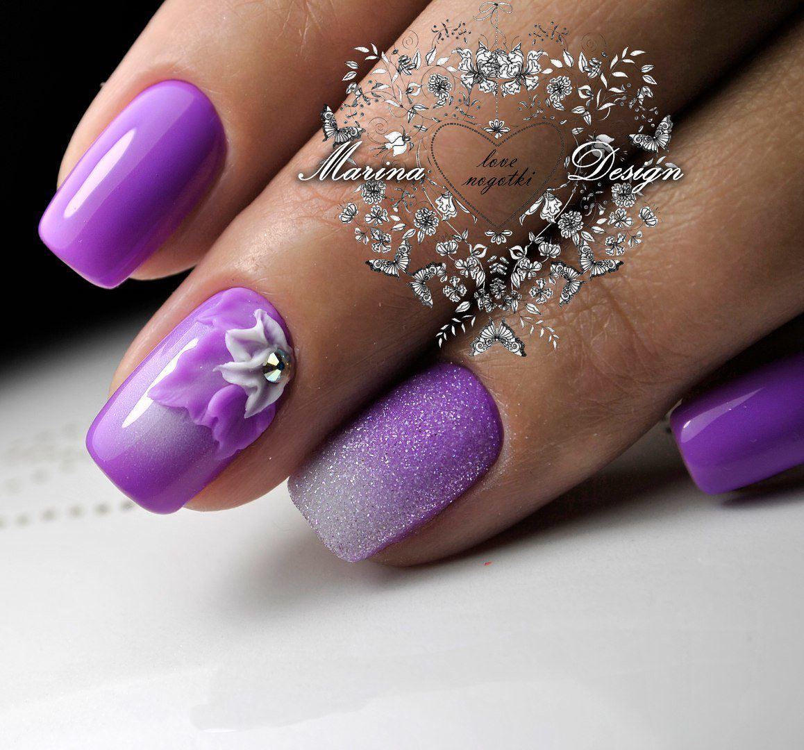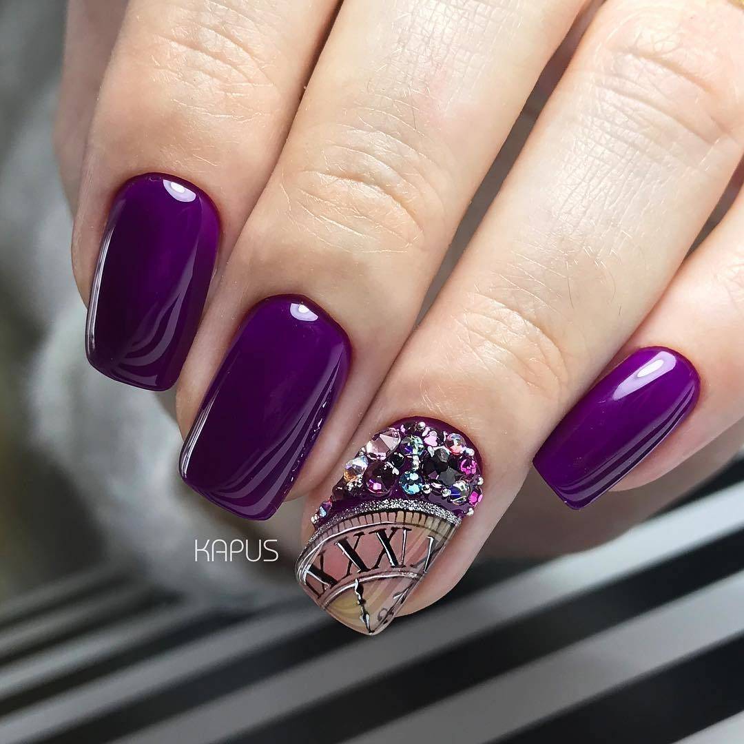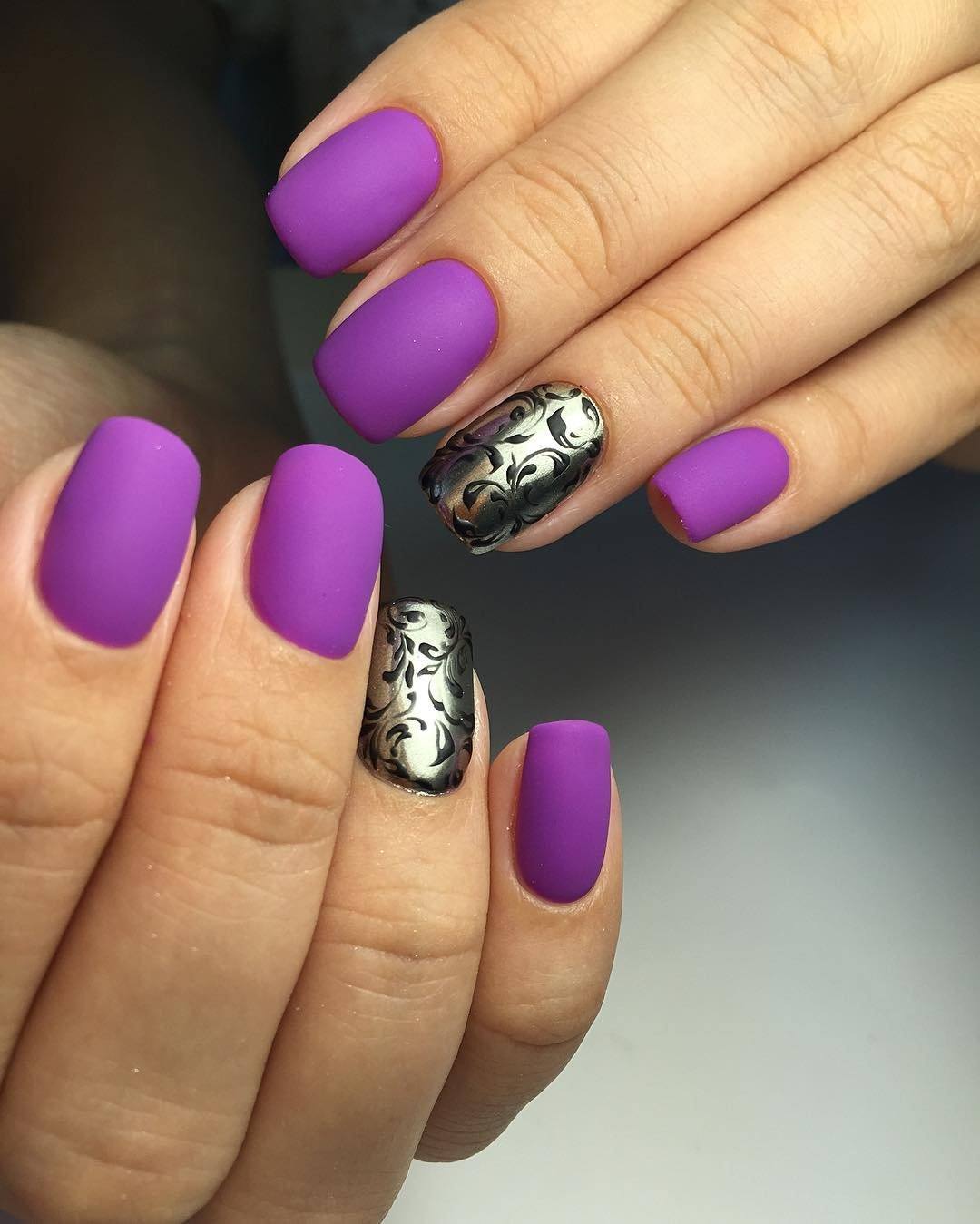 Фиолетовый цвет – нежный и насыщенный одновременно. Он великолепно смотрится на ногтях, может случить отличной альтернативой черному цвету. Маникюр в фиолетовых оттенках станет гармоничной частью вашего повседневного и торжественного образа.