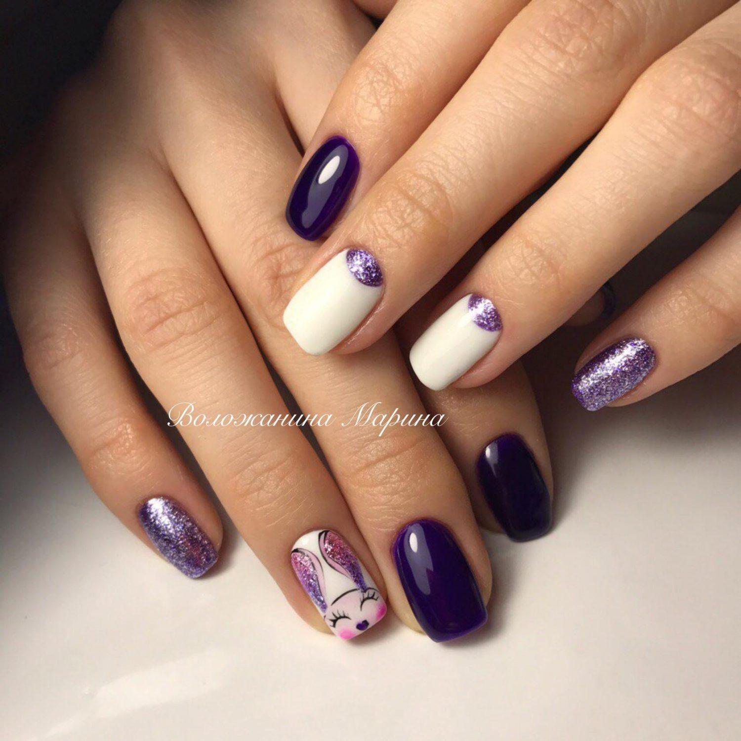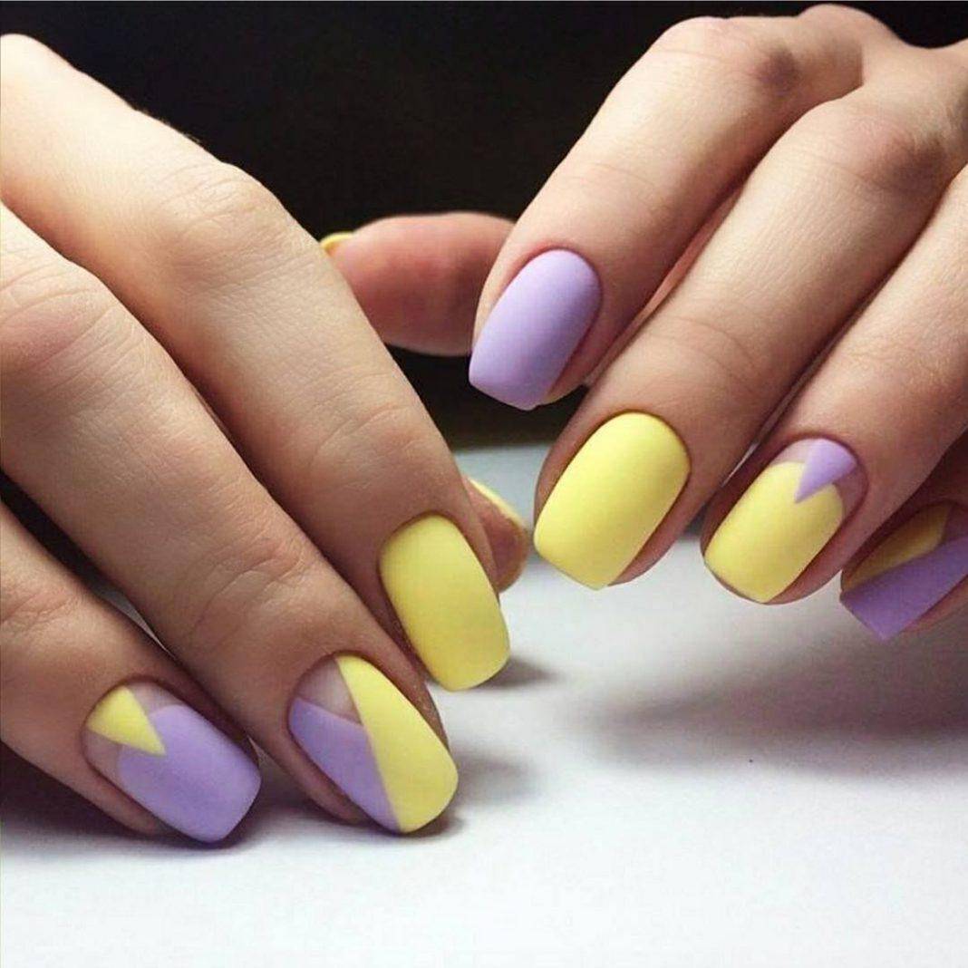 #6 Весенний фиолетовый маникюр с желтым 2020
