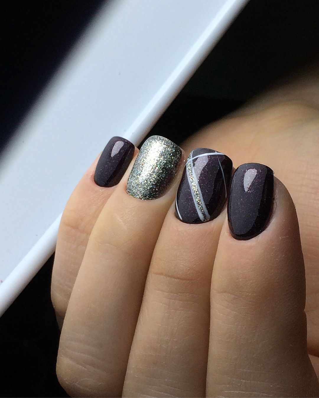 Осенний маникюр на короткие ноготки должен отличатся теплом и спокойствием, что хорошо выражается в маникюре глинтвейн и кофейный. Это два потрясающих цвета, каждый из которых занимает не последнюю строчку в популярности. Кофейный однозначно хорошо подойдет под любую форму коротких ногтей, поможет сделать их визуально больше, чем есть на самом деле. Кофейный как никакой другой цвет подчеркивает изысканность маникюра и предлагается на выбор в разных оттенках.