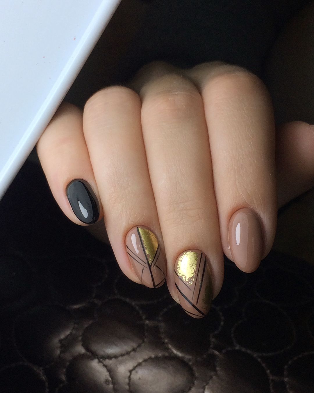 - осенний маникюр миндаль 2020 года может быть сделан с применением геометрии, которая воплощается пи помощи тонких изящных линий, складывающихся в определенные фигуры. Альтернативным вариантом будет нанесение точек;