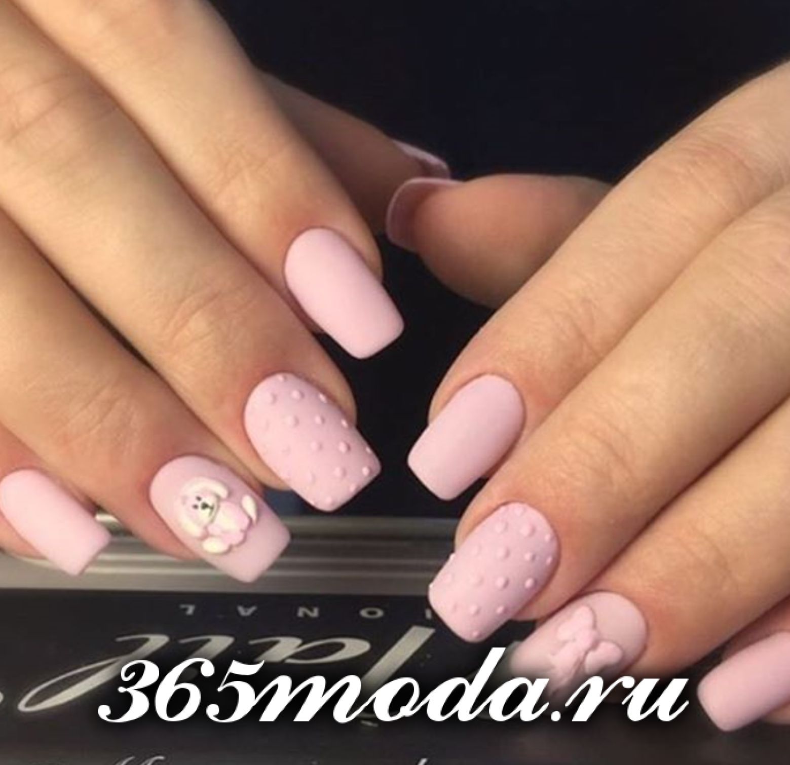 Матовый маникюр очень красиво передает глубину цвета лака и на нем шикарно смотрится любой дизайн. Для зимнего матового маникюра можно использовать темные насыщенные оттенки: черный, бордовый, фиолетовый смотрится очень эффектно, но при этом и нюдовые пастельные цвета тоже будут актуальными в 2020-2021 году.