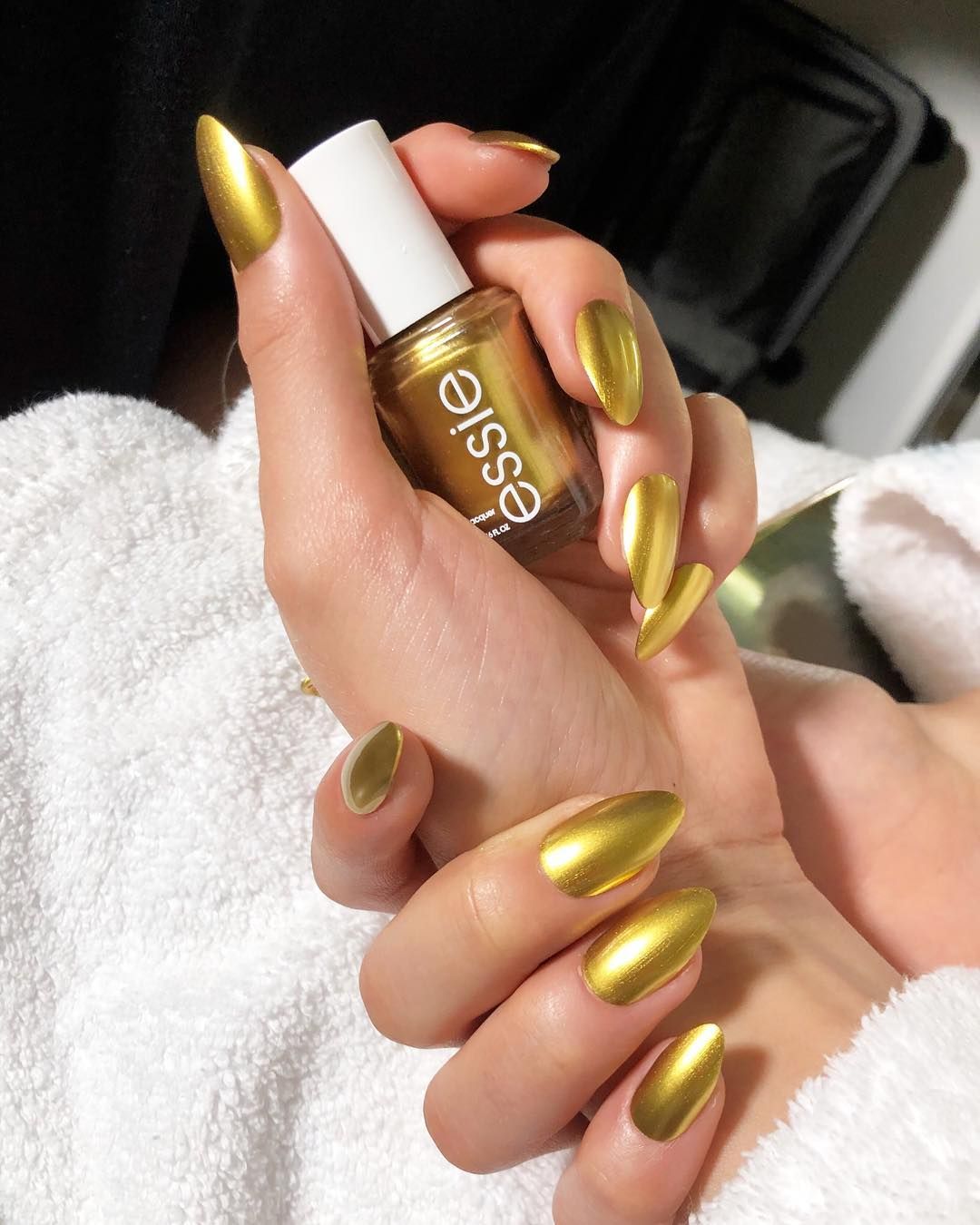 Ранее считалось, что в зимнем сезоне стоит делать темное покрытие. На самом деле нет никаких ограничений, поэтому смело выбирайте то, что нравится именно вам. Одним из самых заметных трендов нейл-арта являются яркие золотистые и серебристые лаки. Они сразу же преображают маникюр и выглядят празднично. Поэтому он идеально подходит для мероприятий, вечеринок и других запоминающихся событий. Кстати сделать его можно не только с помощью лака. В качестве альтернативы отлично смотрится маникюр со втиркой, глиттером или фольгированным покрытием.
