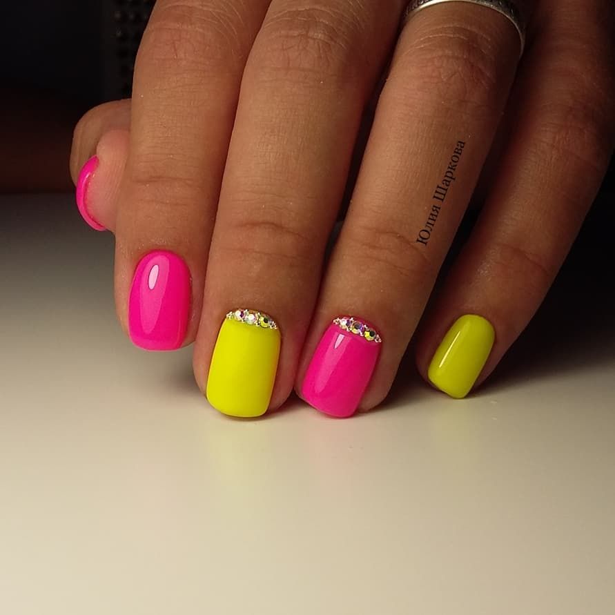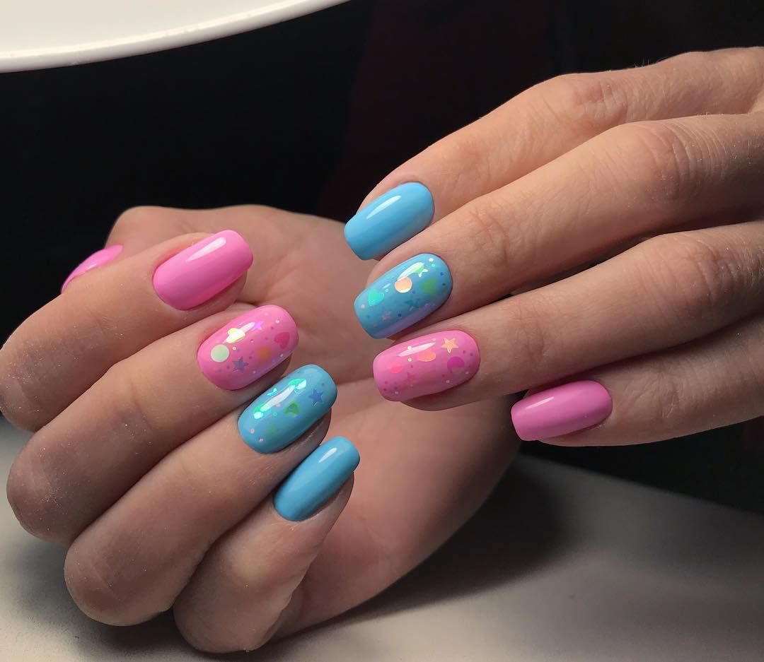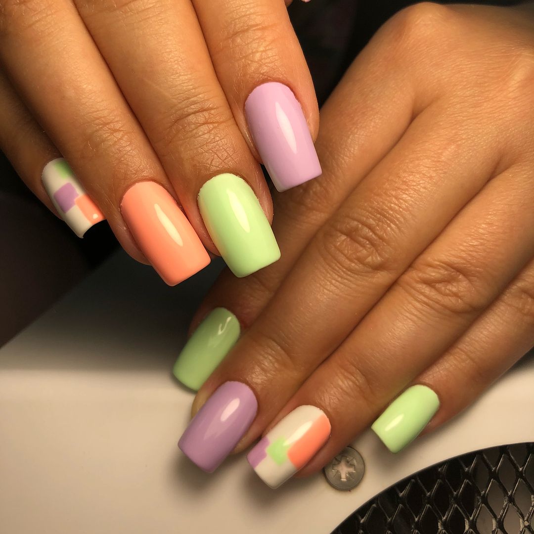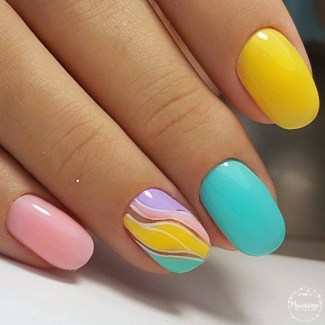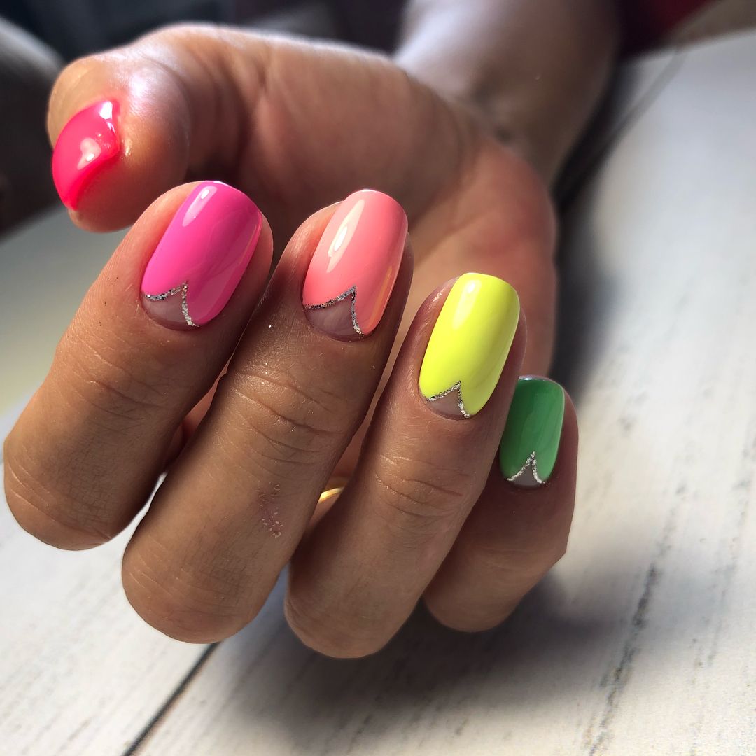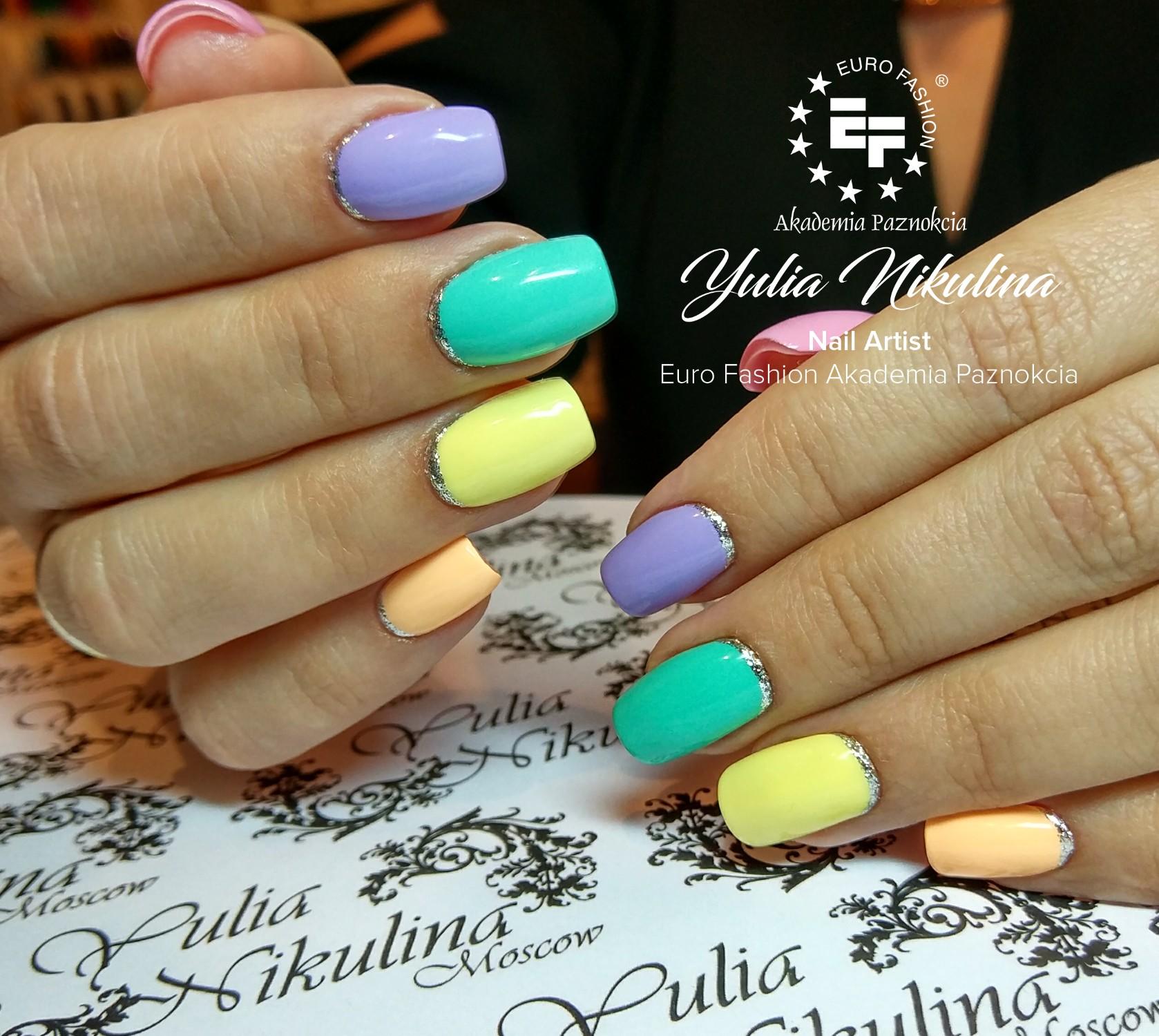 Разноцветный маникюр стал очень популярным благодаря своей универсальности. Каждая модница без труда подберёт аксессуары и одежду для таких ноготков. В грамотном исполнении такой маникюр легко вписывается в самый строгий дресс-код, или смело подчеркнёт ваше яркое настроение в любую погоду. Спешим выбирать оттенки!
