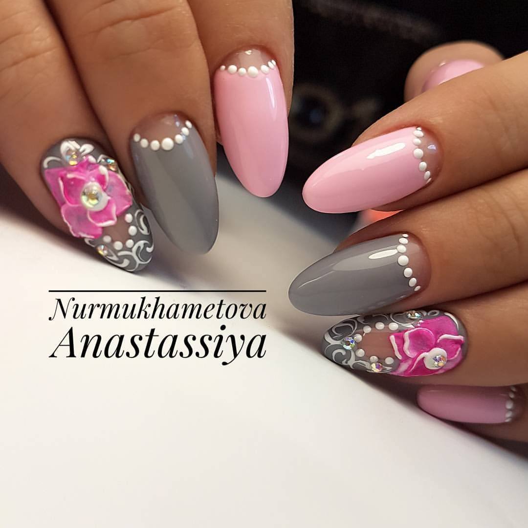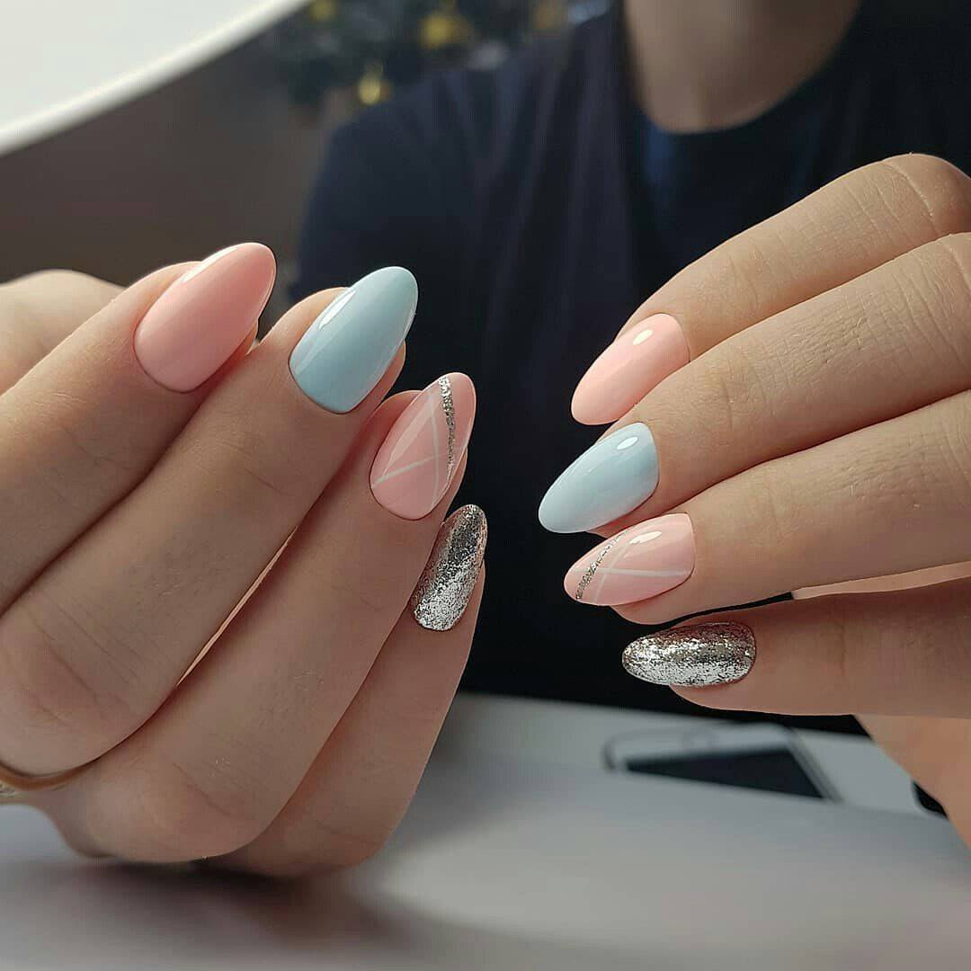 В этом сезоне отдавайте предпочтение миндалевидной форме ногтей, такая форма выглядит очень утончено и стильно. Дизайн ногтей на миндалевидную форму шикарно выглядит и в темных и в светлых оттенках, ярких и пастельных, с блестками, камнями и фольгой, с втиркой и наклейками.