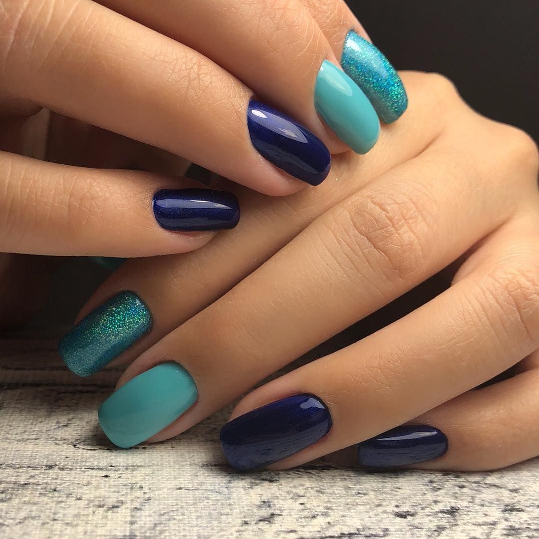 Голубой и синий цвет великолепно смотрится на ногтях в виде однотонного покрытия. Также его часто используют как основу для вязанного и тематического дизайна. Ведь в преддверии Нового года многие девушки выбирают более праздничный, заметный дизайн. Поэтому стразы, блестки, бусины, фольга и другой декор в этом сезоне актуальны как никогда.