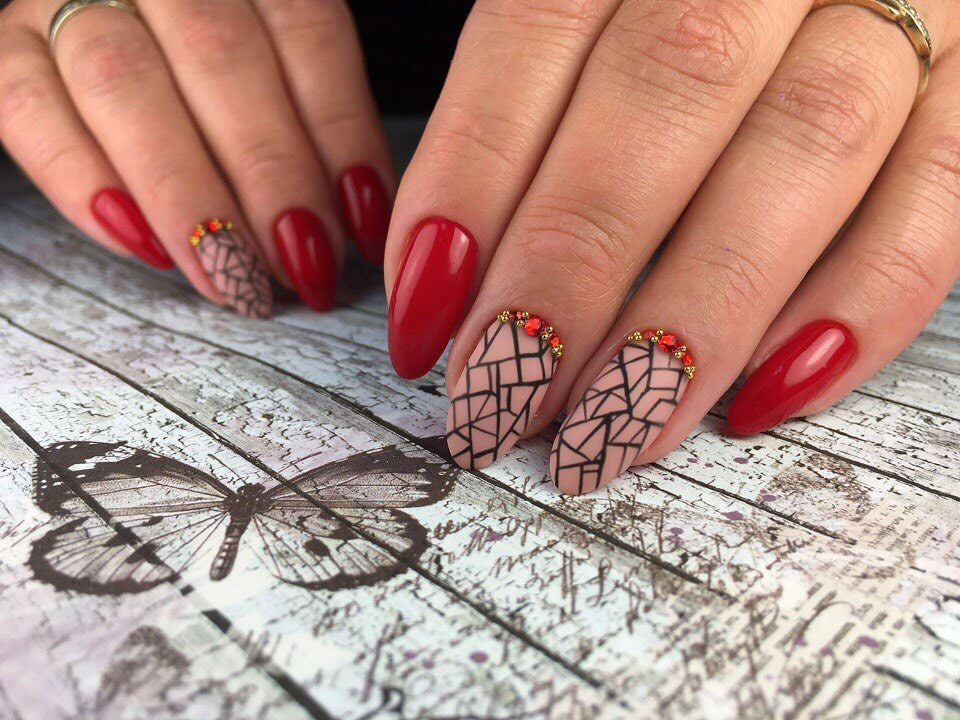 Многие из тех, кто застал 2000-е годы, ассоциируют микс красного и черного с гот-культурой, миром рокеров и бунтарским духом. При желании, маникюр в красных тонах с дизайном черного цвета и сейчас можно сделать дерзким. Но, по большей части, в наше время такое сочетание цветов подойдет любой девушке с яркой, контрастной внешностью, вне зависимости от стиля, который она предпочитает. Эффектнее всего такой прием смотрится в исполнении насыщенного темно-красного маникюра с черным дизайном.