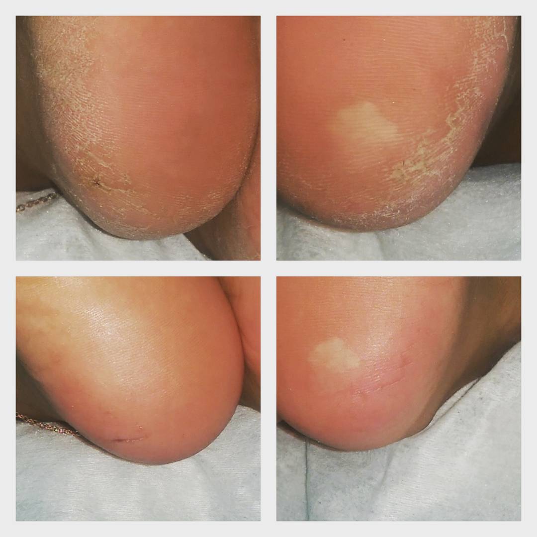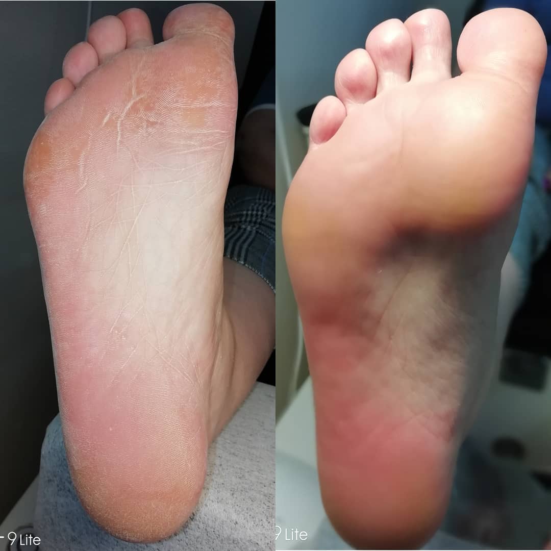 Особое внимание уделяется проблемным местам – пяточкам и боковой стороне ступни;