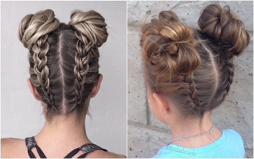 Такая прическа должна идеально держаться, поэтому на готовые завитки и пучки одевают незаметную сеточку. Стоит заметить, что спортивные прически для девочек, занимающихся танцами, исключают использование шиньонов, различных украшений и накладных волос.