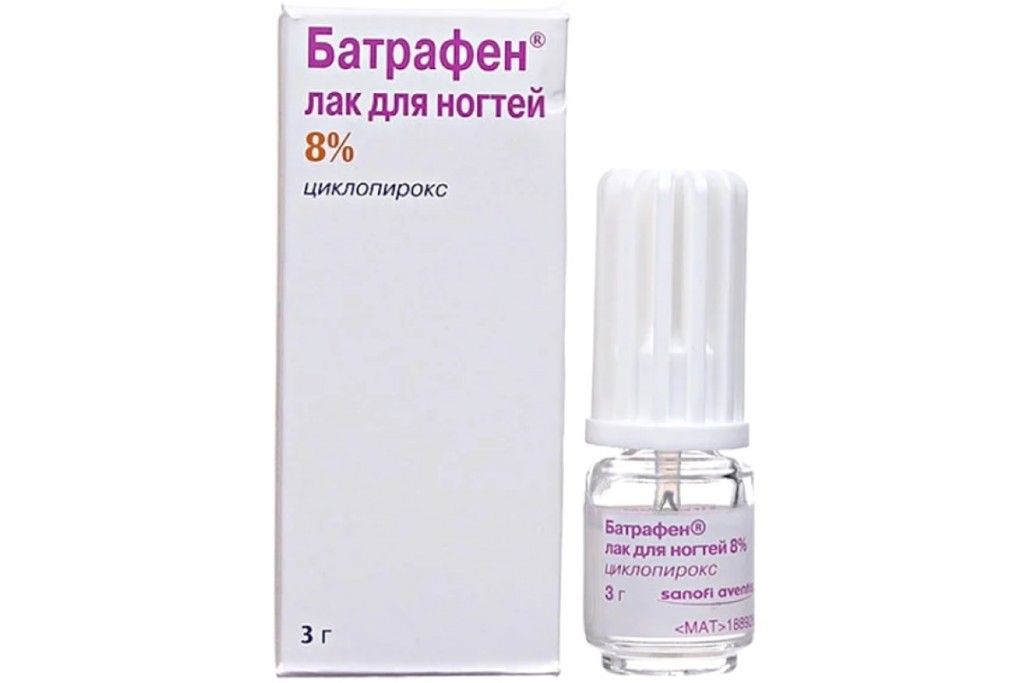 Лак широкого спектра действия. Активное вещество лака накапливается в ногте за счет быстрого проникновения. Наносится тонким слоем на пораженный ноготь 1 раз в день через сутки в течение первого месяца, далее реже. Период лечения обычно не дольше 6 месяцев.