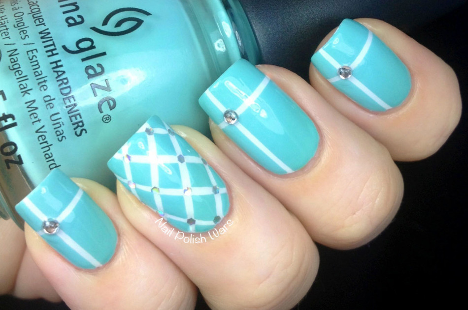 бирюзовые ногти со стразами в стиле «Тиффани»