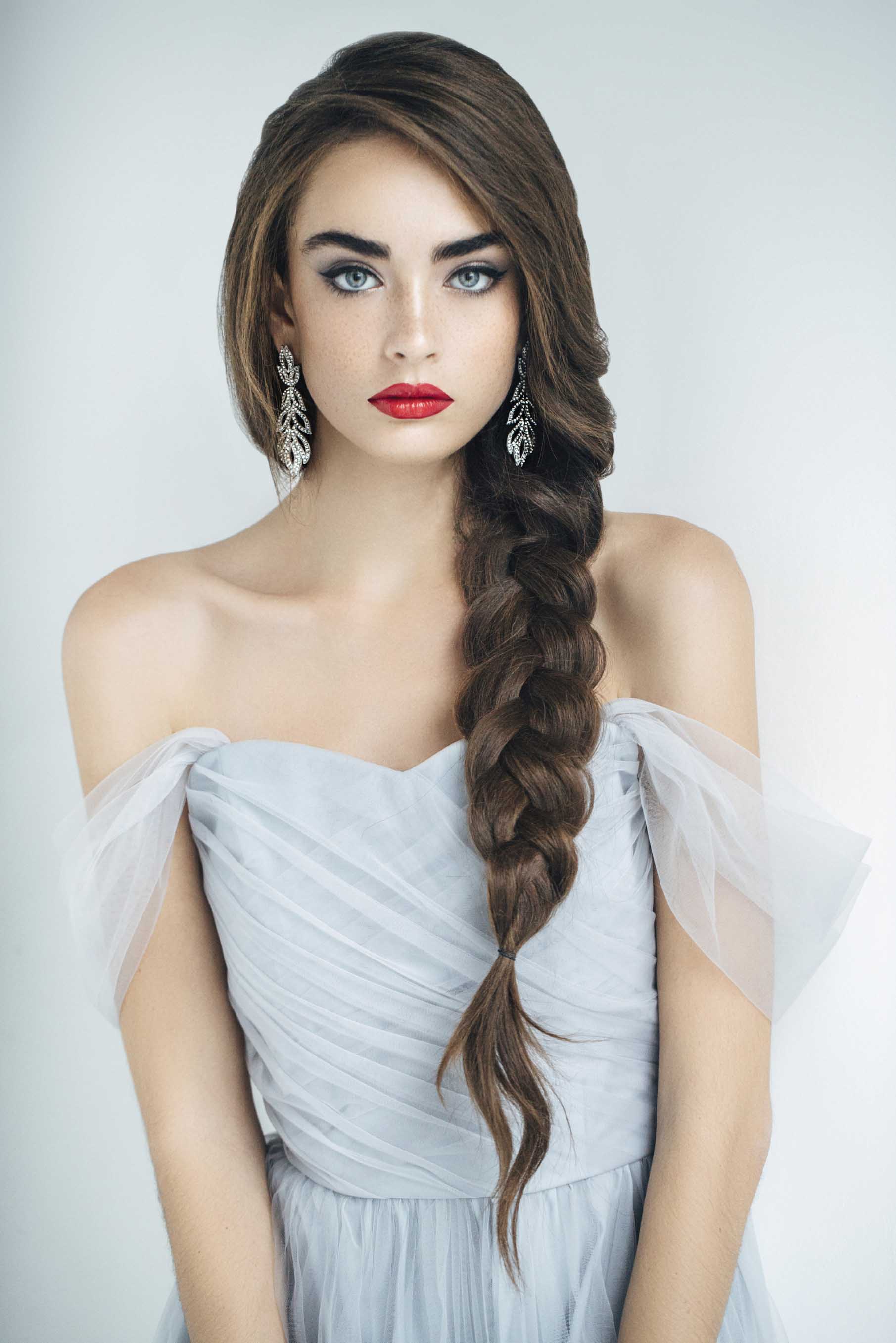 - элегантный образ получится с черными и каштановыми волосами;
