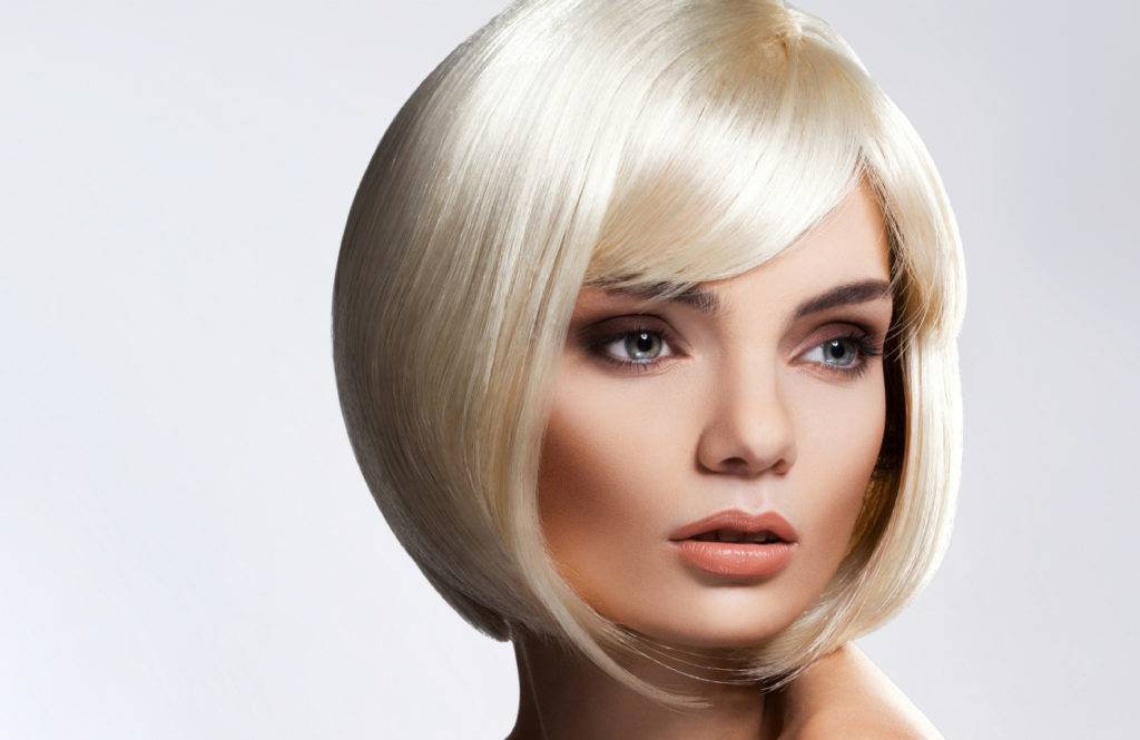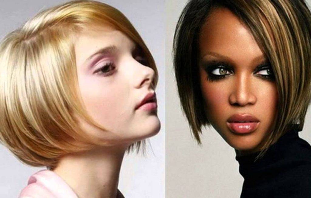 - Волосы необходимо стричь под острым углом, но можно слегка сгладить переход от лица к затылку, однако он все равно должен быть визуально обозначен.