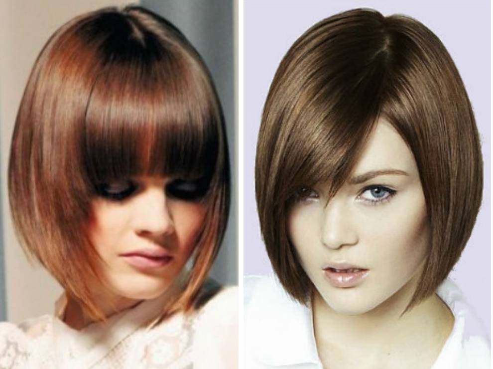 Они также выполняются с градуировкой прядей. Данный тип стрижки одинаково хорошо смотрится с челкой и без нее. Однако именно челка, эта броская и яркая деталь, делает образ дерзким, манящим и эпатажным. Боб каре, вид сзади, спереди и сбоку показаны на фото, отлично подходит под любой стиль одежды: спортивный костюм, классические брюки и блузка