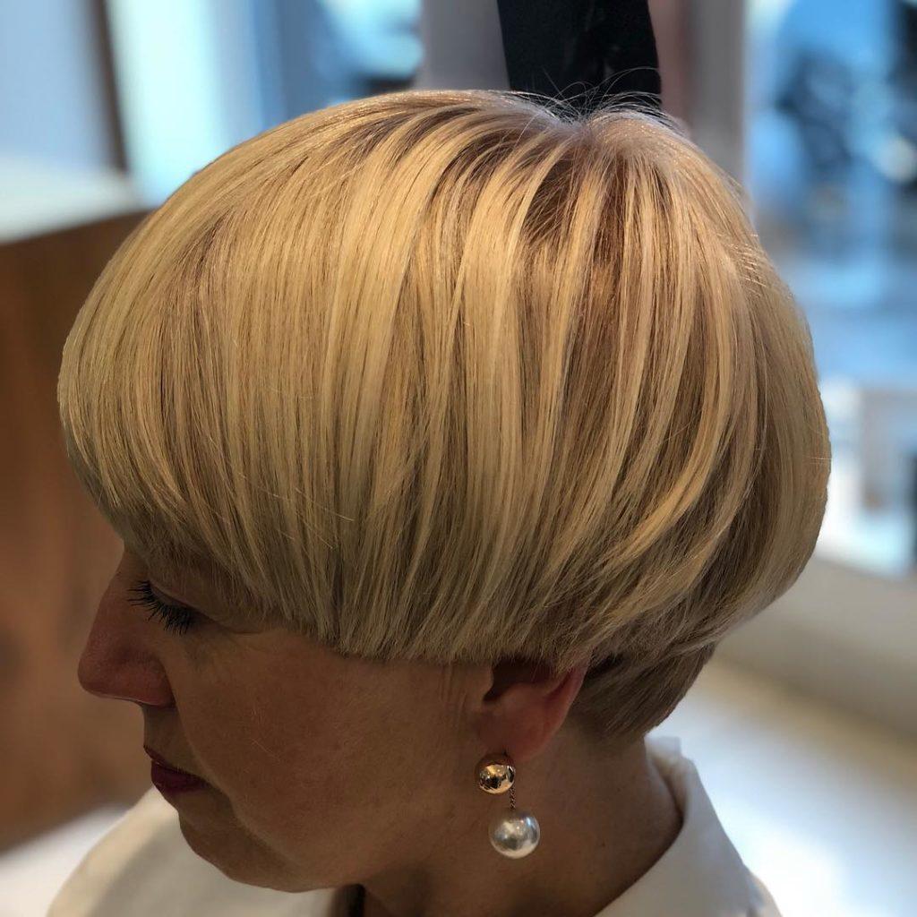 Подобная прическа экстравагантна, она очень омолаживает женщину, делает акцент на ее глазах. Подходит она для дам с любым типом внешности, за исключением полнолицых. Особенно хорош французский «боб» на обладательницах лебединой шеи.