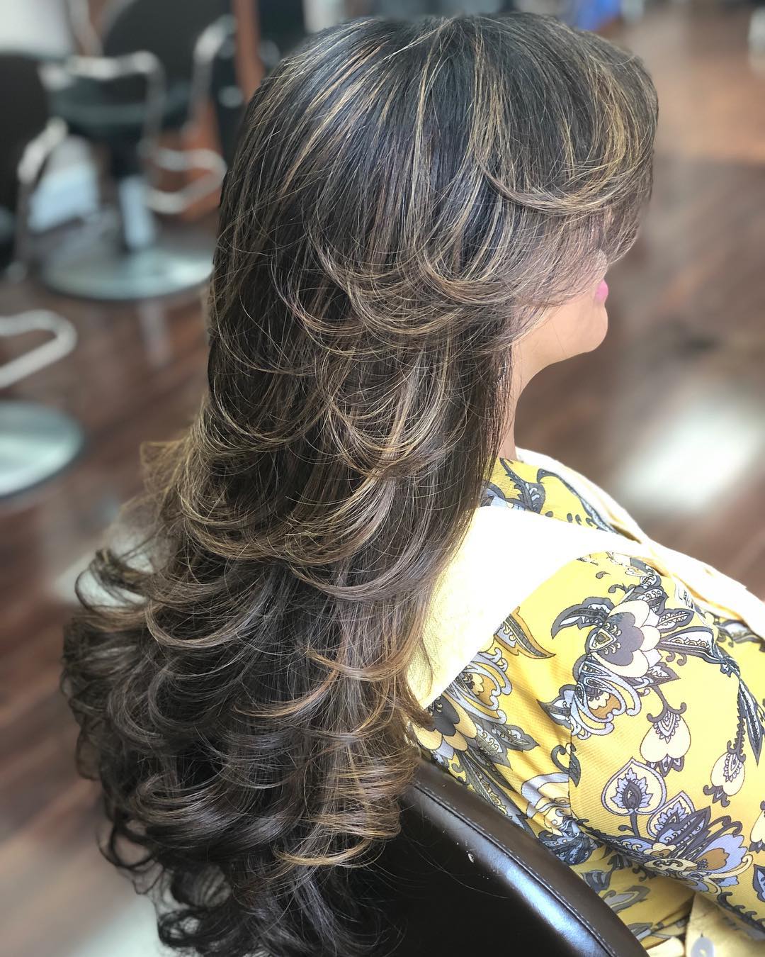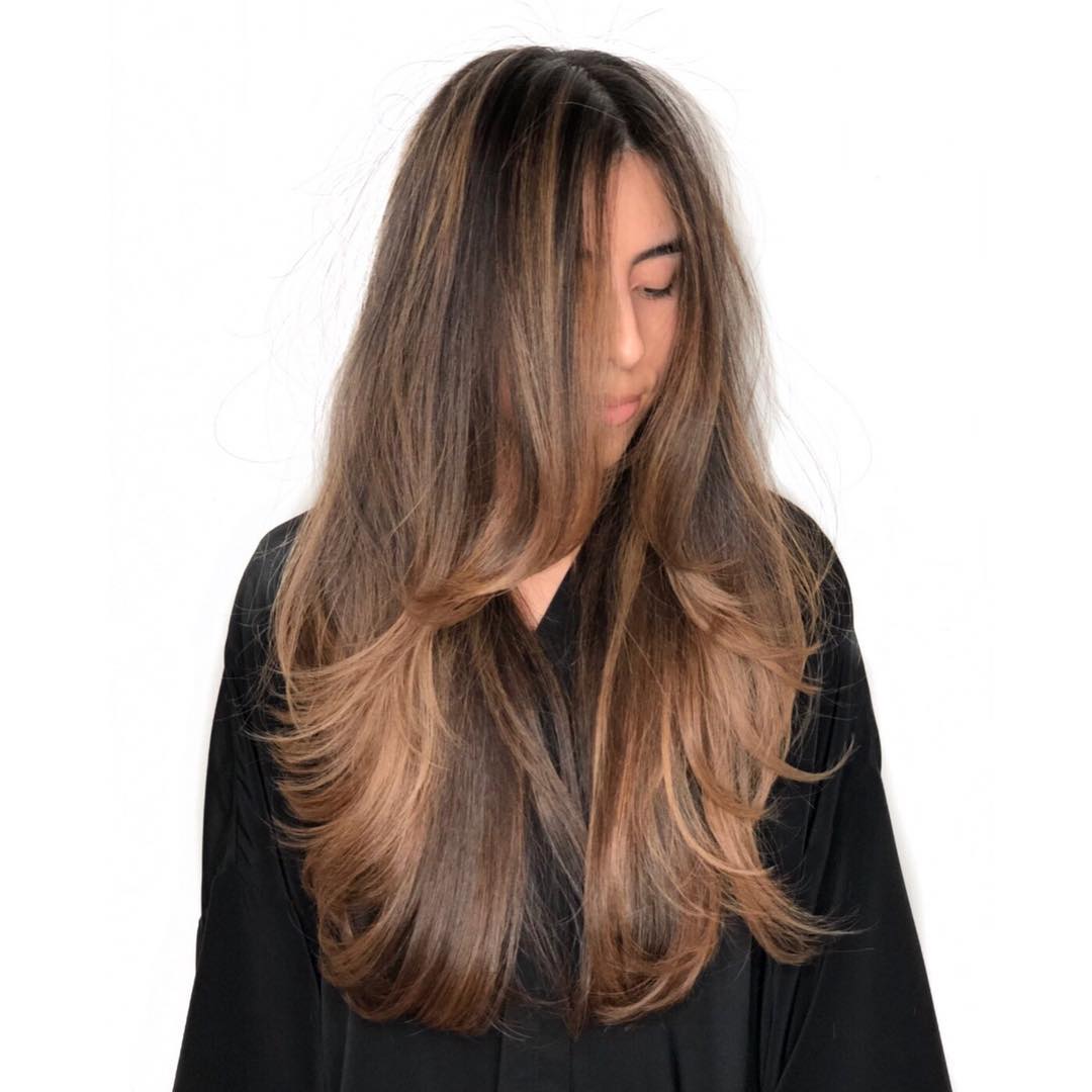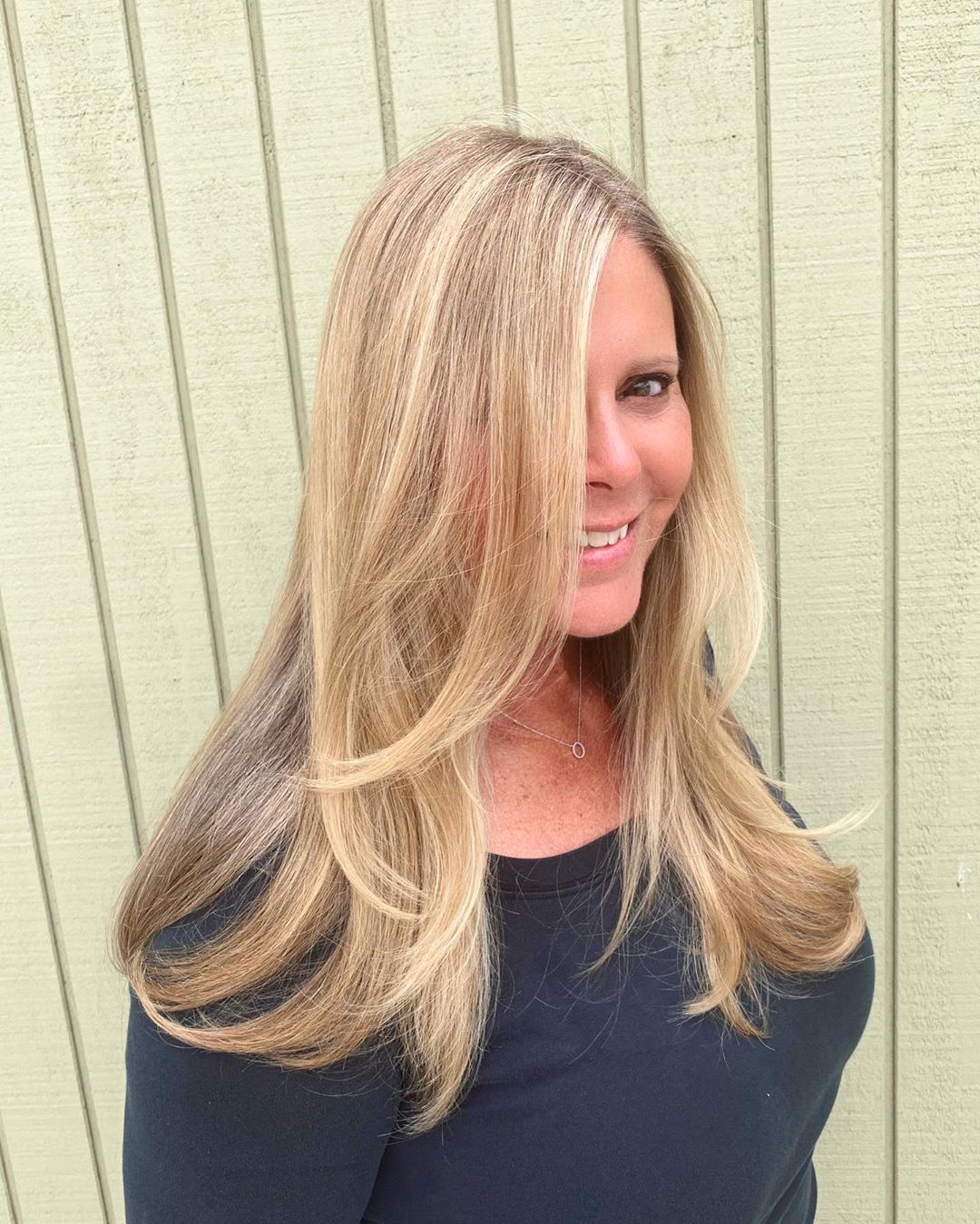 Этот стиль отлично смотрится на длинных волосах с лесенкой, особенно с легким мелированием. Слои создают живую, подвижную прическу, которая еще больше усиливает эффект легкости.