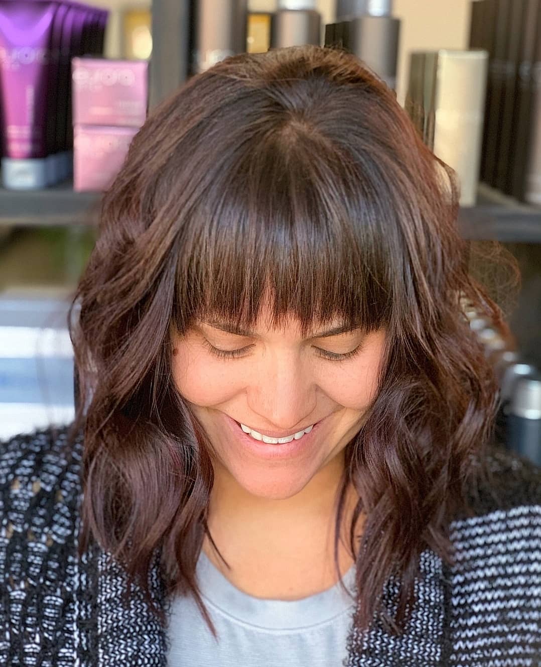 Также челка может плавно переходить в общую среднюю длину, если она достаточно длинная.