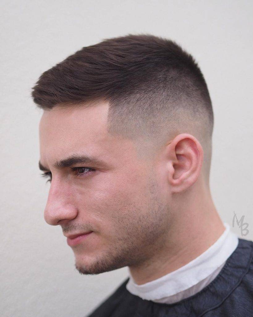 Такой вариант мужской стрижки подходит для тех, кто не готов к ультракороткой длине. Добавление модного фейда с плавными переходами сделает линии мягкими и сглаженными.