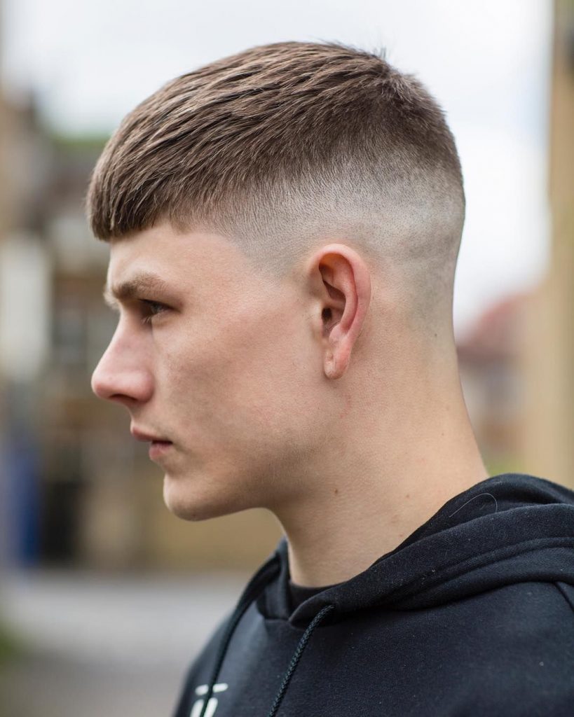 Вариация стиля милитари — виски и затылок выбривают под ноль. Окантовка становится резкой и очень заметной. Этот стиль делает обладателя брутальным, даже несколько агрессивным. На первый взгляд данный тип мужской стрижки может выглядеть как стрижка под ноль.