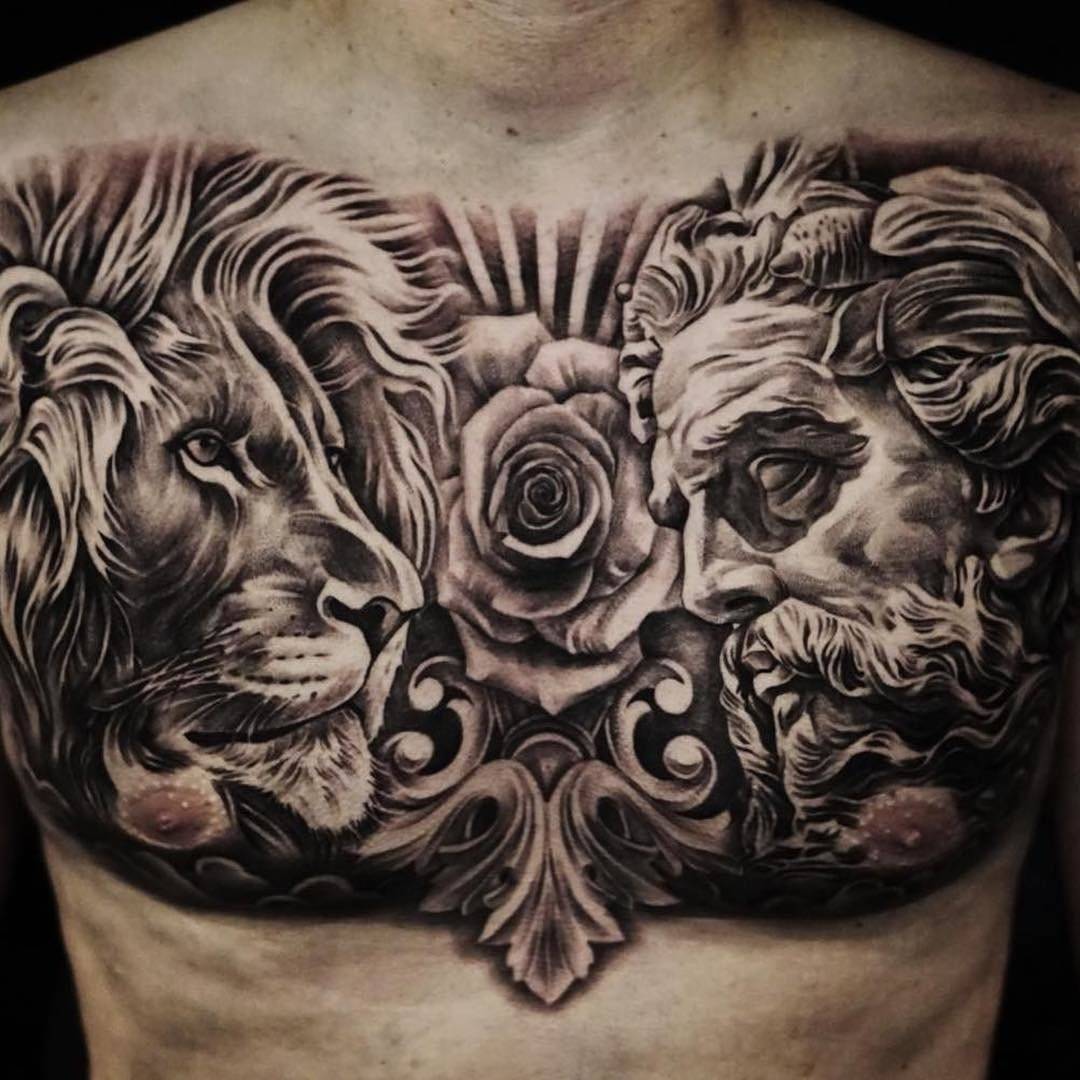 | Грудь и спина | Смотрятся тату на накаченной мужской груди. Для максимального раскрытия внутреннего мира человека область тела является достаточно обширной. Из этих же соображений тату наносятся на спину. На женщинах крупные изображения смотрятся негармонично. Обычно представительницам слабого пола на эти зоны мастера советуют наносить надписи. |