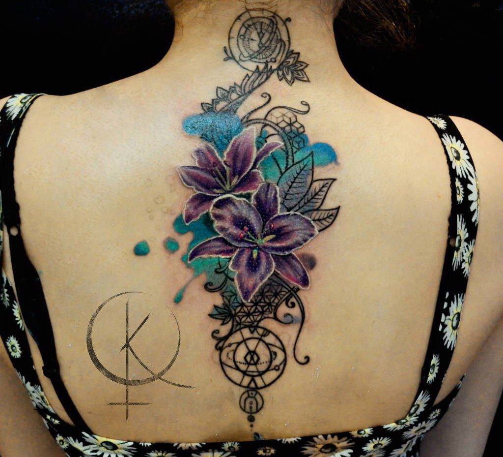 Это один из немногих стилей, который неподвластен модным тенденциям. Яркие оттенки стали использоваться практически во всех видах тату. Но Графика осталась неизменной.