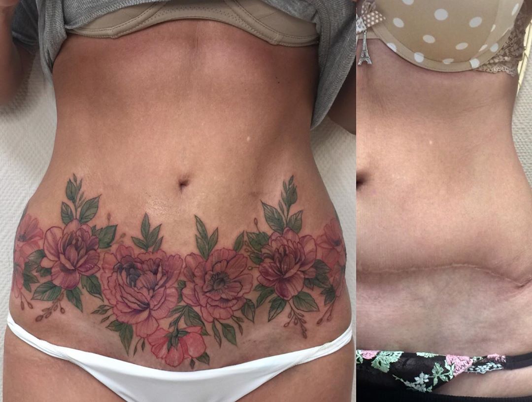 Чаще всего стоит задача скрыть дефекты кожи на руках, груди и животе. Перекрытие шрамов на животе востребовано у девушек, перенесших кесарево или желающих скрыть растяжки после родов. Для обоих полов актуально скрытие шрамов от аппендицита, которые отлично обыгрываются и становятся уникальным украшением тела. Это не обязательно значительный и объемный рисунок, даже небольшая цветочная ветка или скромная композиция скроет неприятные моменты.