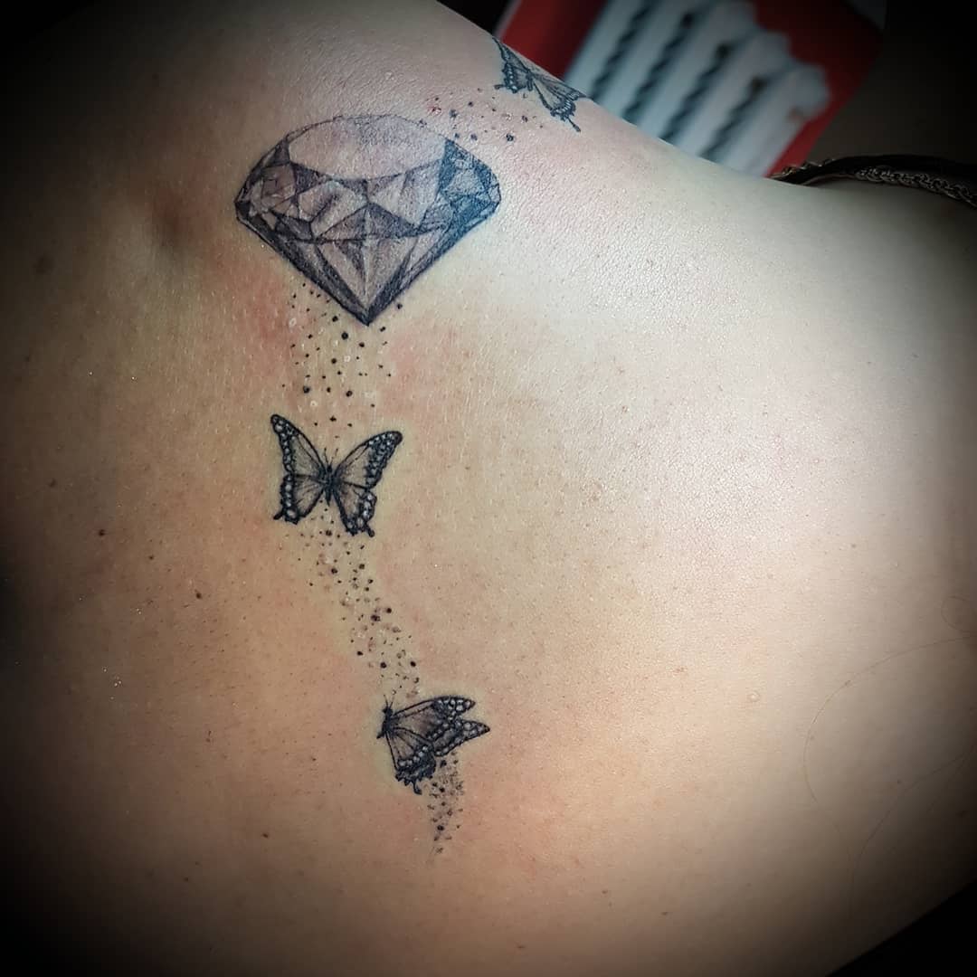 Шрам, закрытый татуировкой на спине, в районе позвоночника, становится практически незаметным. Достаточно нанести удлиненный рисунок в виде застежки молнии, стилизованного позвоночника или змеи, чтобы дефект стал достоинством и украшением тела.
