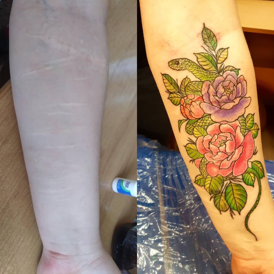 - Выбрать профессионального тату-мастера, который имел опыт перекрытия шрамов татуировкой.