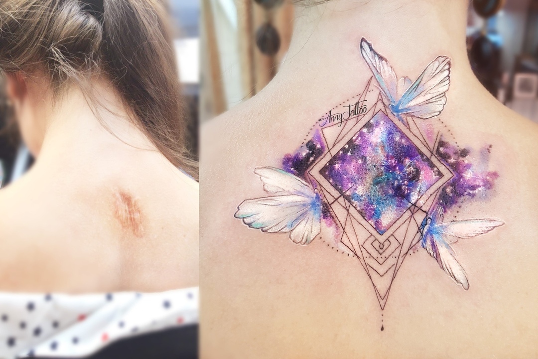 Практически у всех людей найдутся рубцы, шрамы и растяжки кожи, которые хотелось бы скрыть от окружающих и самому забыть об их происхождении. Обращаться к мастеру татуировок следует после полного заживления, примерно через полтора-два года покраснение уйдет и шрам станет белым, тогда можно наносить татуировку. Не на все шрамы можно нанести рисунок, мастер подскажет все возможности и варианты решения в каждом конкретном случае.