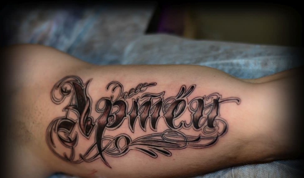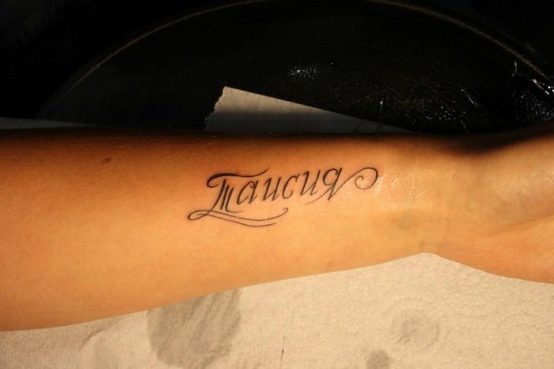 Фото тату надписи имена поможет оценить, как татуировка смотрится со стороны и насколько выигрышно вы сможете преподнести его тем, чьё имя красуется на вашей коже.