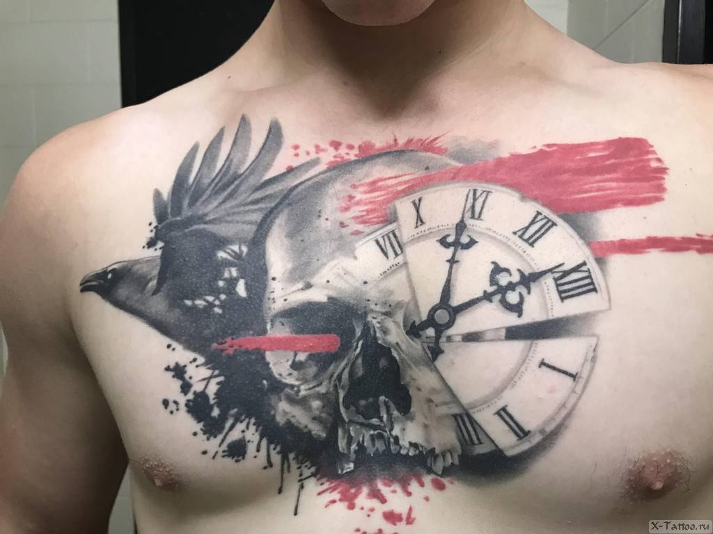 Мужчина, на теле которого изображен ворон, скорее всего, подчеркивает свою мужественность, возможность быть лидером. Для некоторых – это символ пережитой боли, утраты, страдания. Сочетание ворона и черепа может символизировать смерть, бесстрашие.