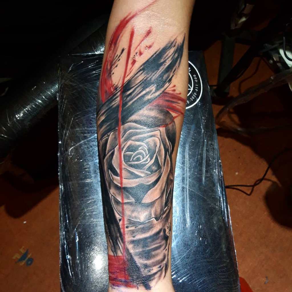 Художники не часто используют черные туши для изображения цветов, но не в этом стиле. Роза из трэш-польки на предплечье представляет собой элегантную и модную татуировку, которую могут делать как мужчины, так и женщины.