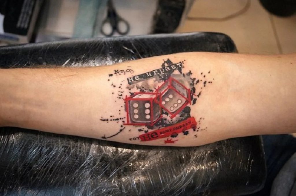 В игре в кости победа — это жизнь, а проигрыш — смерть. Контраст между смертью и жизнью делает их подходящим элементом для этого стиля татуировки. Кости в татуировке трэш могут символизировать зло, удачу или возможность.
