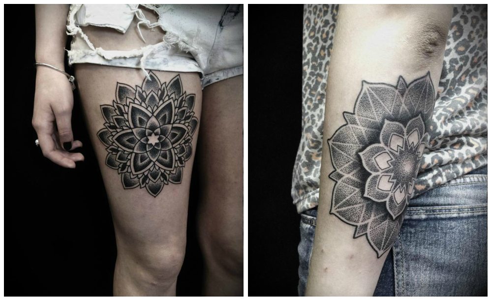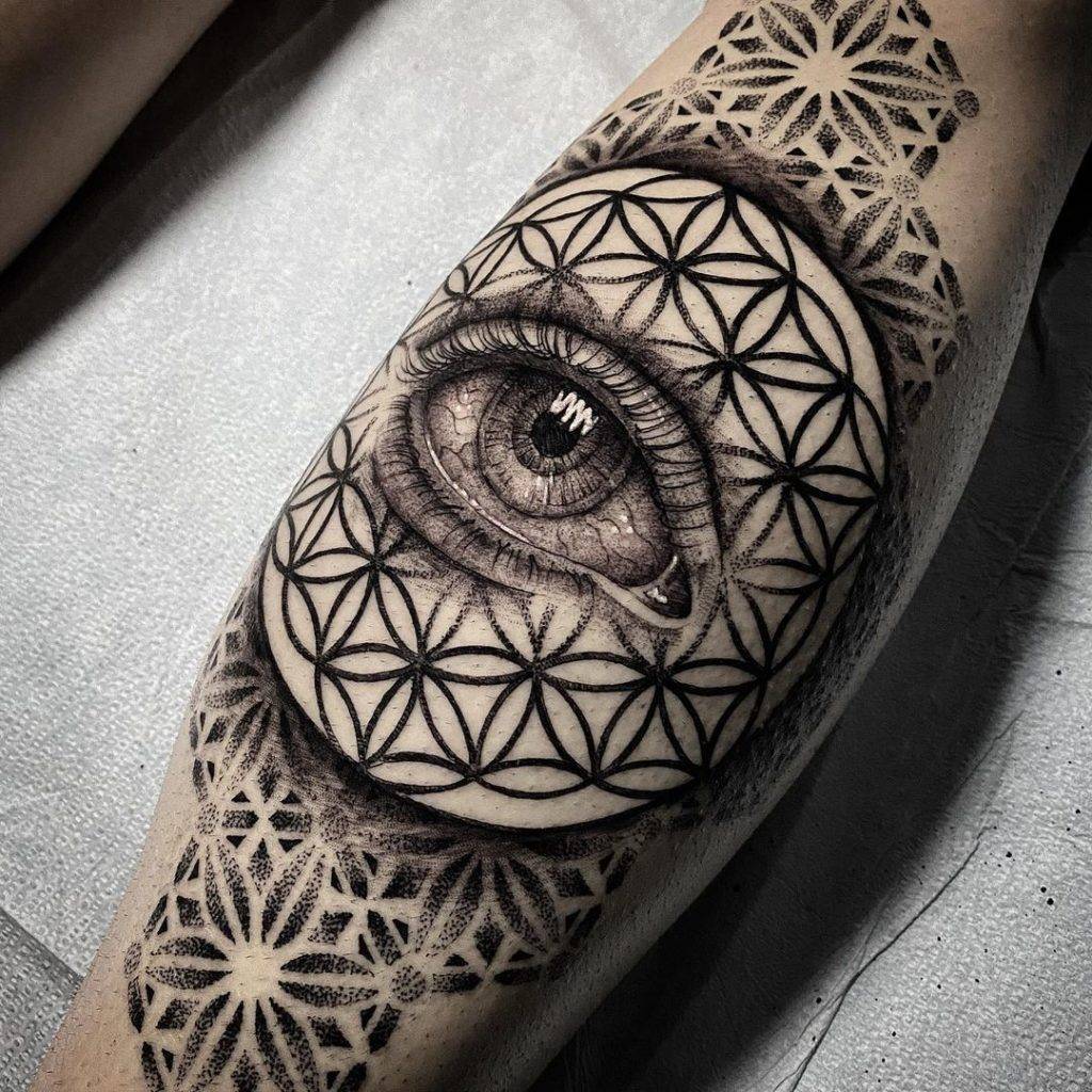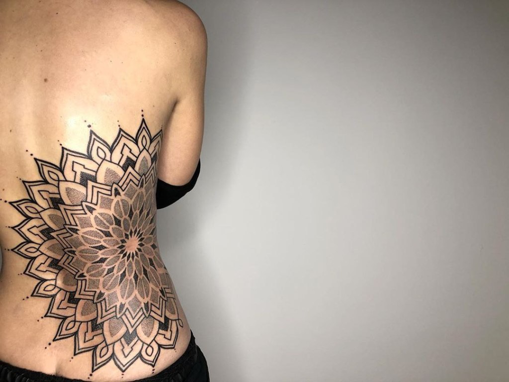 Важно: от татуировщика требуется не только твердая рука, но и знание математики, он должен разбираться в векторной графике. В данном случае нельзя просто взять и перенести готовый эскиз из интернета на кожу — нужно точно рассчитать все моменты, чтобы рисунок получился идеально симметричным
