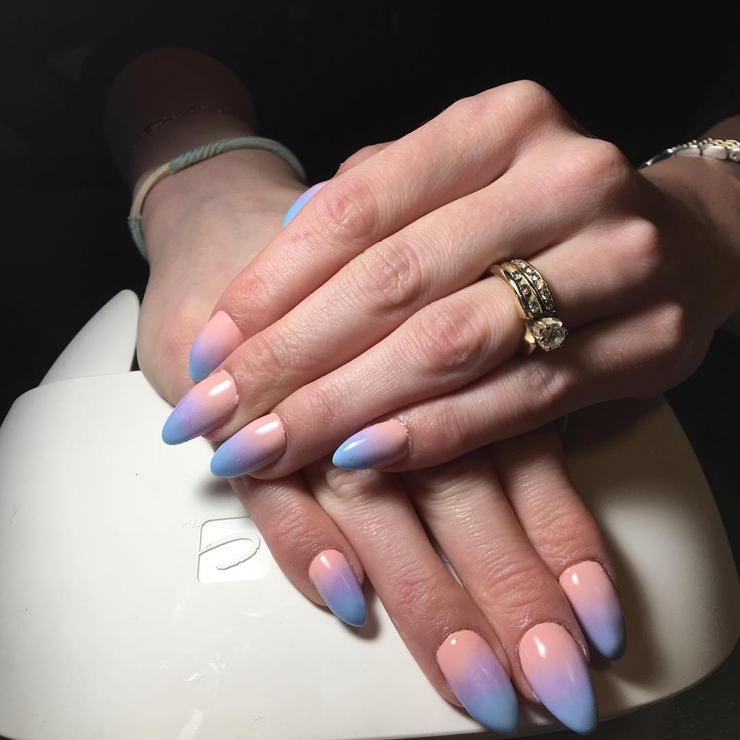 С маникюром градиент можно экспериментировать сколько угодно. Такой дизайн будет уместен везде: на работе, деловой встрече, романтическом свидании, свадьбе, дне рождении и так дальше. Главное – правильно подобрать нужные оттенки.