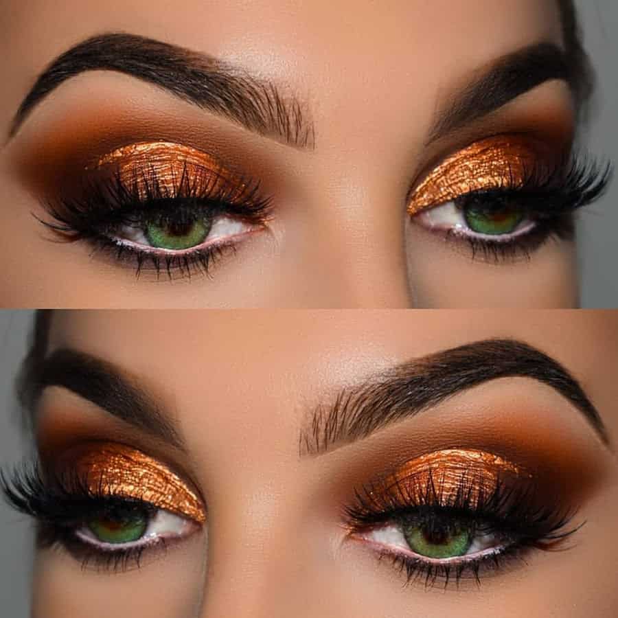Такие тени «зажгут» зеленые глаза. Взгляд станет мягким и очаровательным. Теплый макияж будет хорошо смотреться в осенне-летний период.