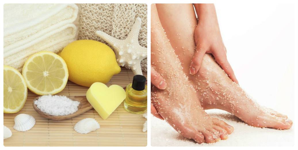 - Скраб. С его помощью делаем массаж, отшелушиваем огрубевшую кожу и делаем ее более гладкой. Наносится перед ванночкой и держится до впитывания в кожу, после чего массирующими движениями смывается.