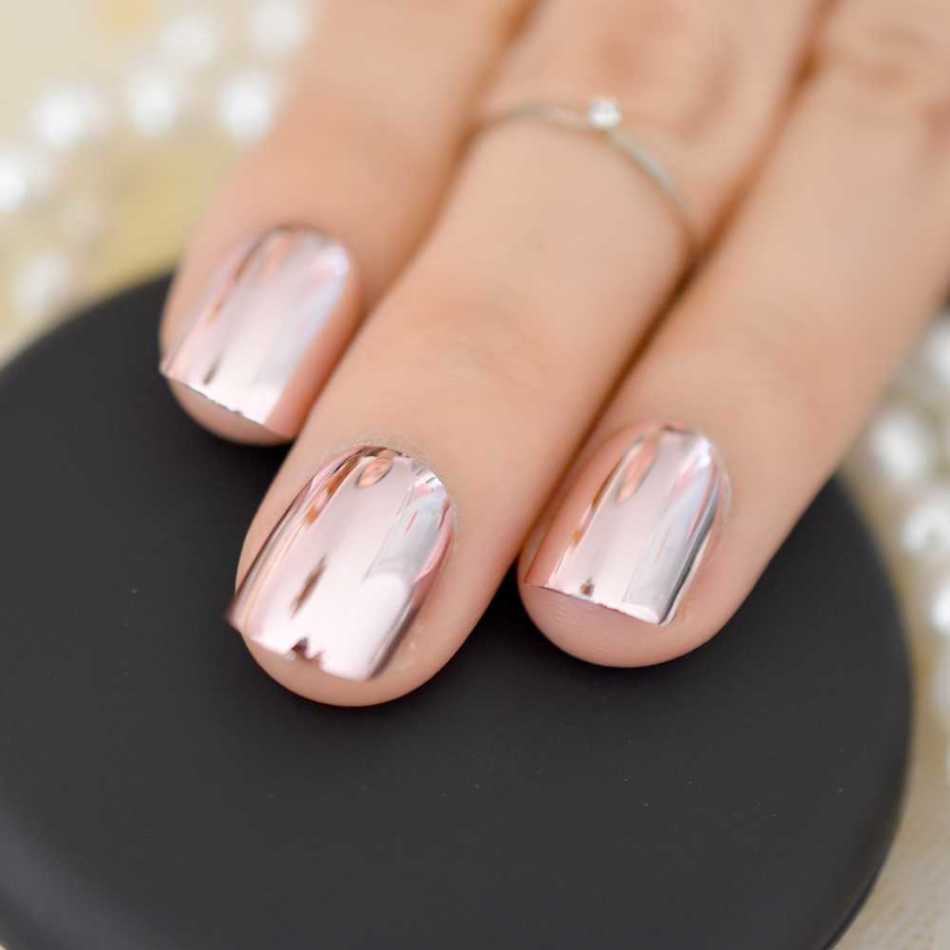 Металлик. Лаки с эффектом металлик долго сохраняются на коротких ногтях. Используйте золотистые, серебристые, стальные оттенки. Добавляйте полоски серебра или золота на безымянный палец. В салоне можно воплотить зеркальный или хромированный маникюр.