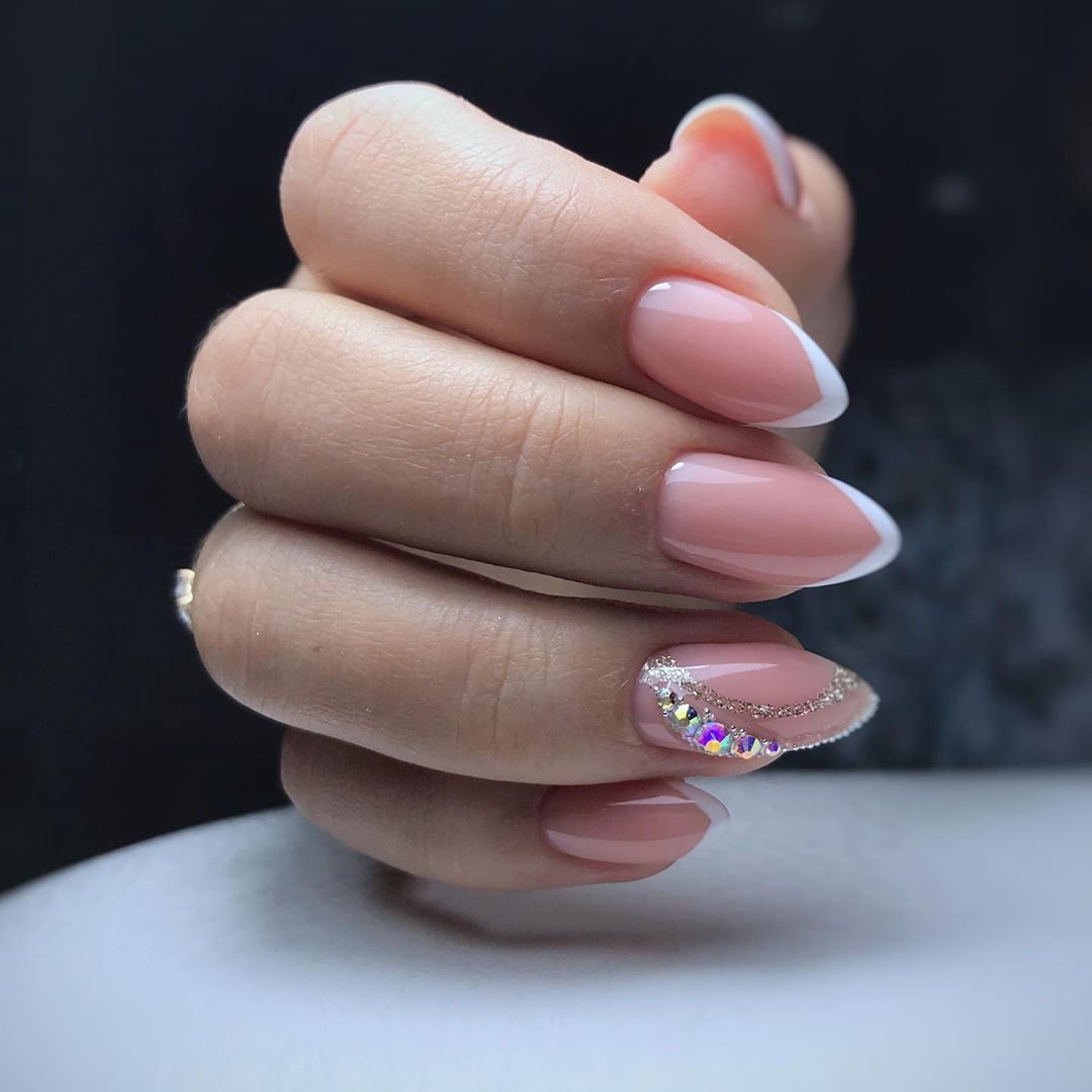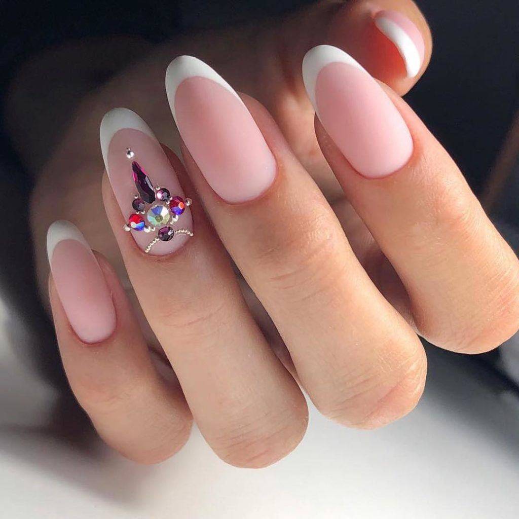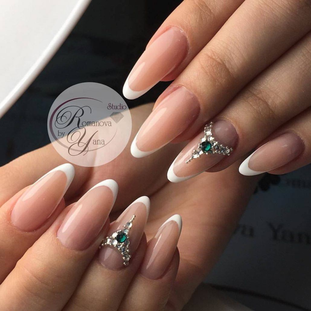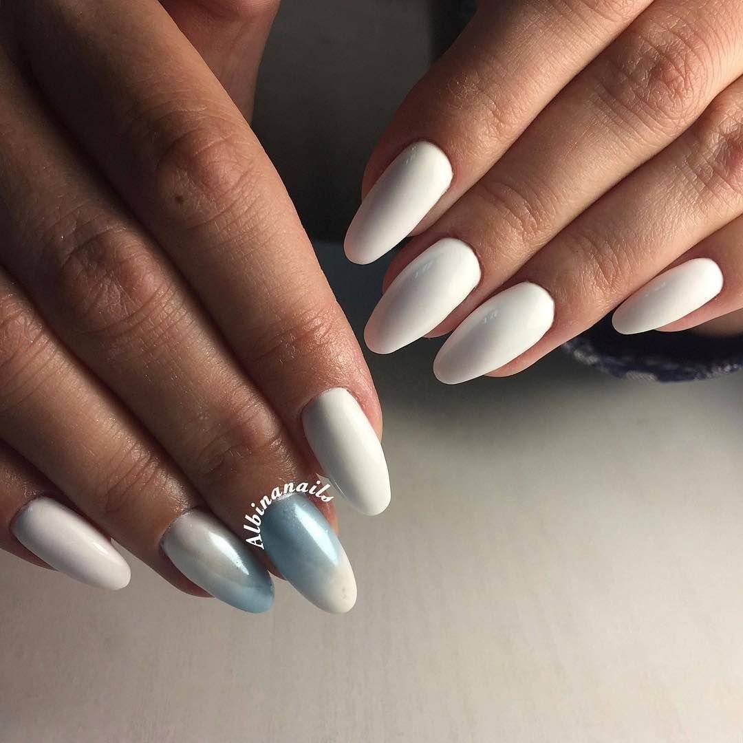 Белый маникюр на миндалевидные ногти