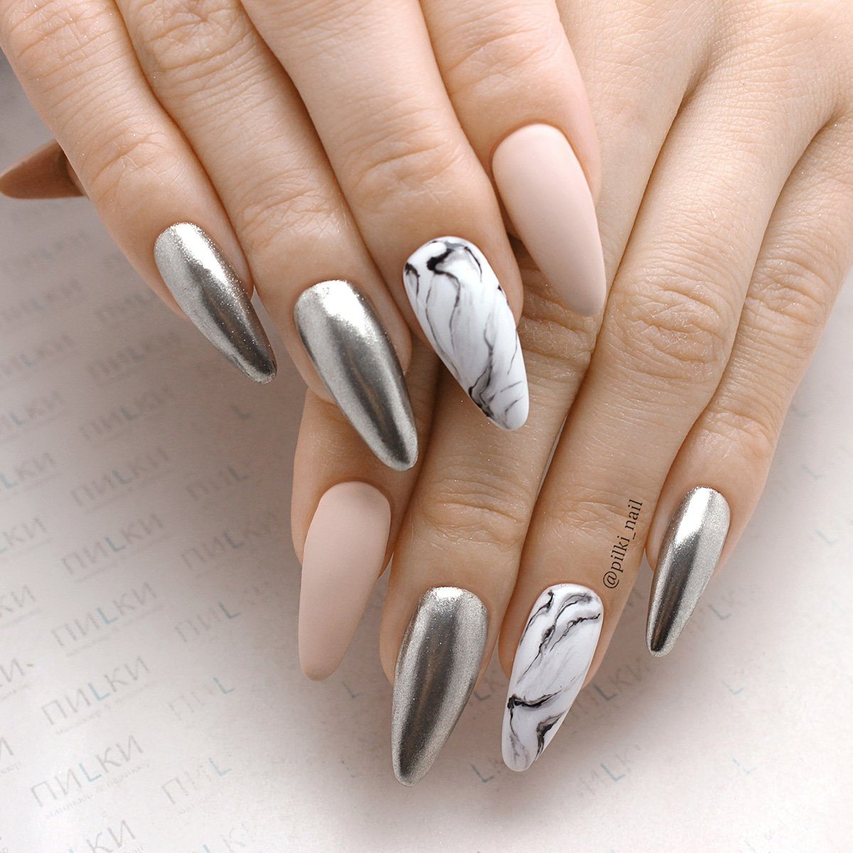 Миндалевидный маникюр в стиле negative space