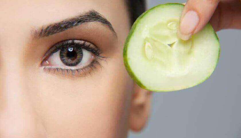 - Огуречная маска. Огурец натереть на терке, смешать с сырым яичным желтком. Нанести на лицо, а кожу вокруг глаз накрыть кружочками свежего огурца.