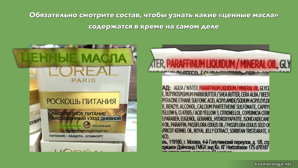 То есть основу этого крема составляют не ценные растительные масла, а продукты нефтехимии. Поэтому всегда обращайте внимание не только рекламные обещания, но и на состав косметического средства