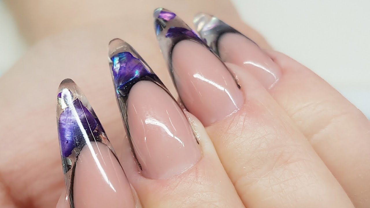 - Выложить небольшие кусочки слюды, блестки или «осколки» битого стекла на ногти.