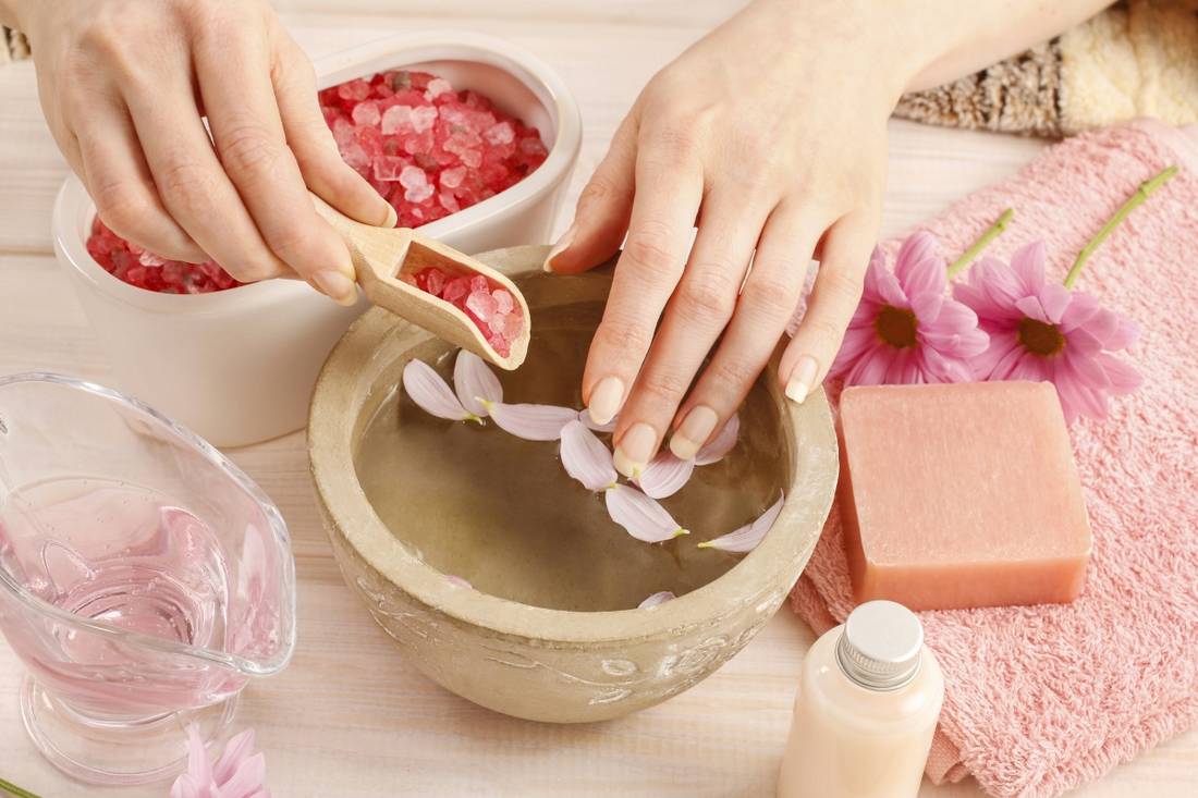 Ванночка с добавлением соли поможет не только хорошо отбелить ноготки, но и отмыть их после огорода или другого события, когда забившиеся частички грязи просто не вымываются с мылом.
