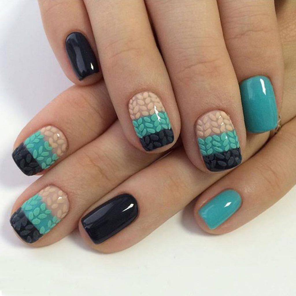 Одним из весьма популярных видов исполнения вязаного маникюра является использование нескольких близких оттенков в одном маникюре. К примеру, можно использовать розовый, персиковый, голубой, бежевый, бирюзовый гель лаки на отдельных ноготках, выполнив на них забавные узоры.