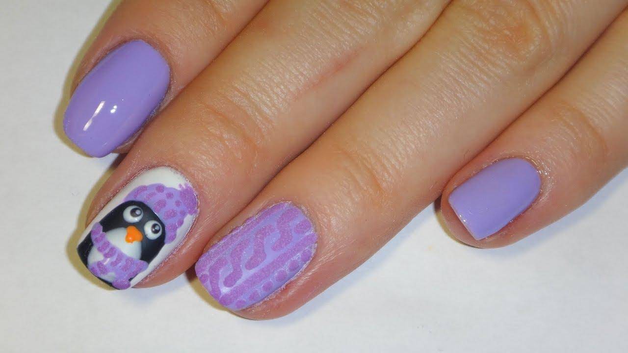 На одном ноготке вязка свитера, а на другом милый рисунок забавного мишки, пингвина или оленя в шапочке или с шарфиком – подобный вариант стильного вязаного маникюра поднимет настроение не только своей хозяйке. Комбинации красочных рисунков в виде мультяшных персонажей или зверушек с вязаным эффектом могут быть самыми разнообразными.