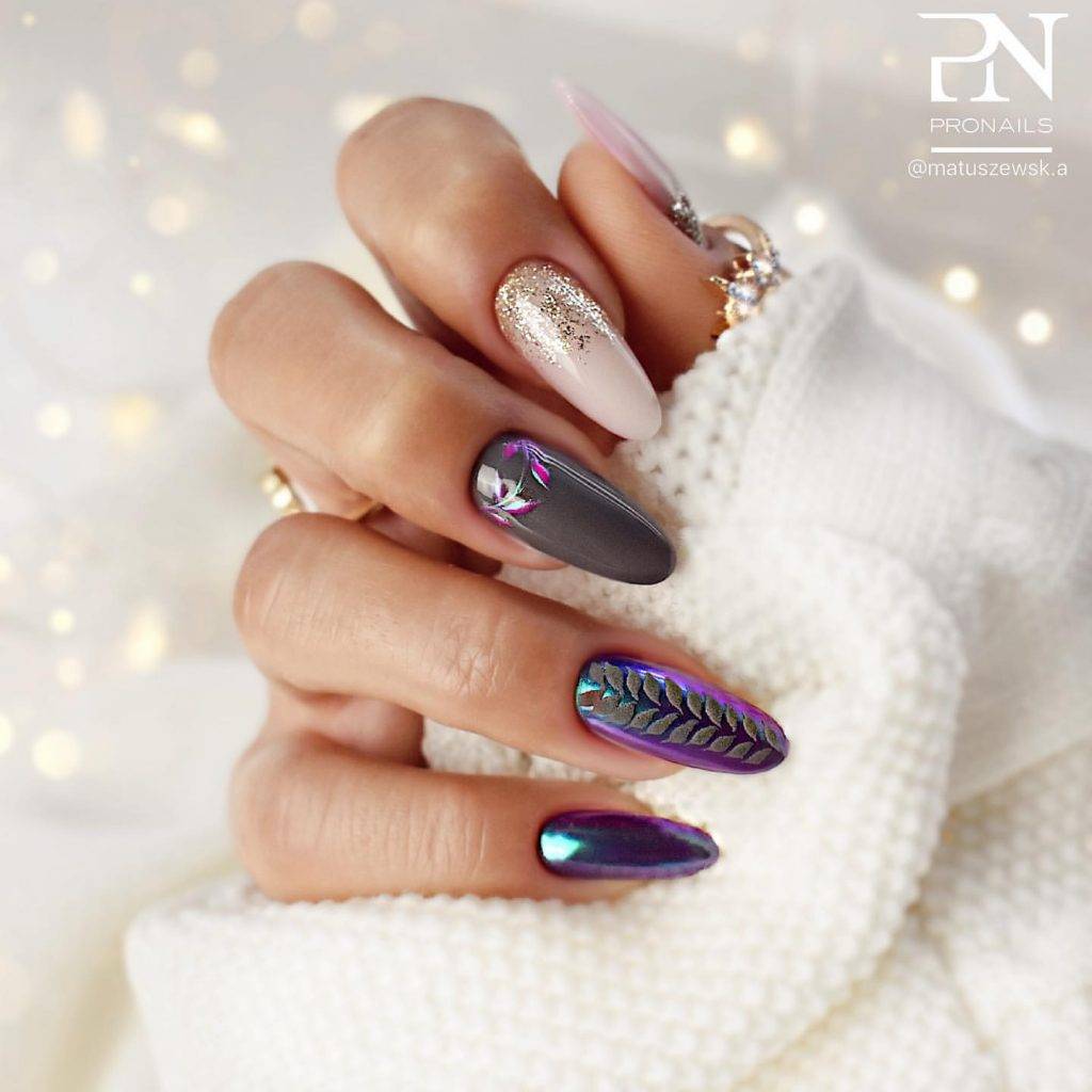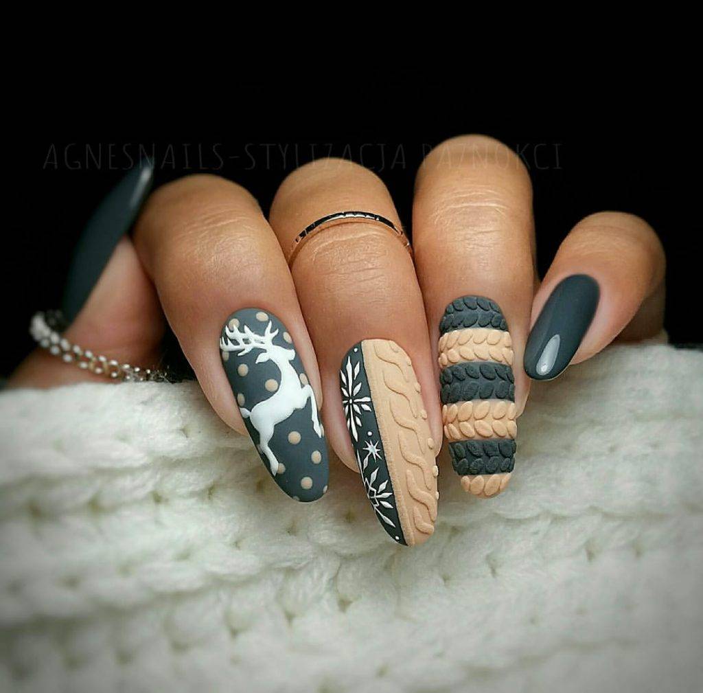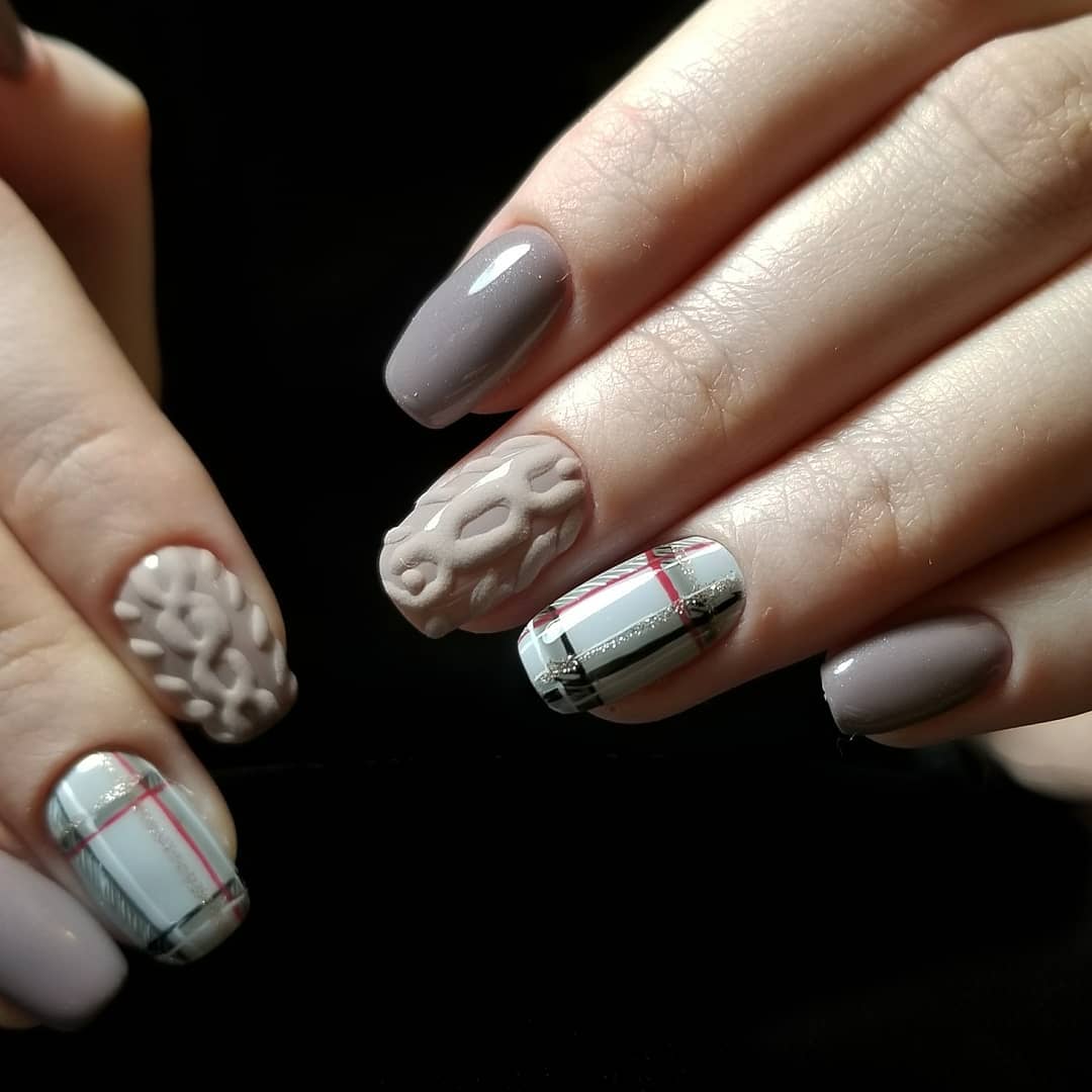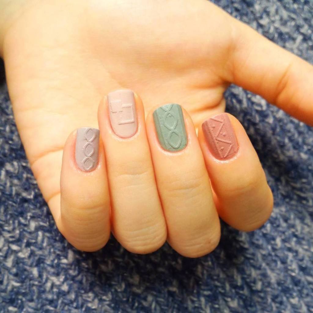 Стильный вязаный маникюр 2020-2021 года в разных оттенках в одном маникюре