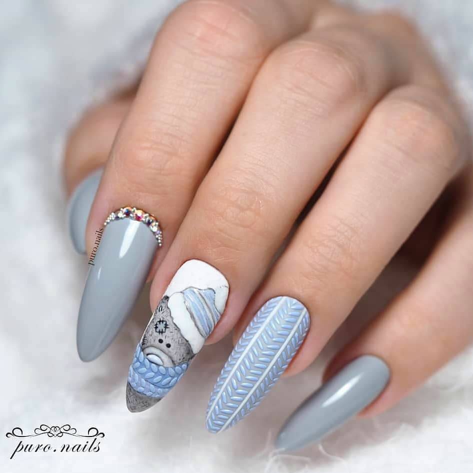 Забавные изображения милых Тедди в стиле вязаный свитер очень оригинально и забавно смотрятся на ногтях. Такой вязаный маникюр точно поднимет настроение не только вам, но и вашему окружению, ведь милые мишки очень красивы.
