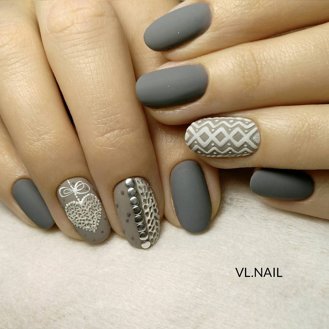 Что если вязаный узор в маникюре сделать маленькими сердечками? В подобном дизайне свитера ногти смотрятся очень красиво и нежно. Как вариант вязки сердечками нейл-дизайн хорошо смотрится в матовом однотонном маникюре.