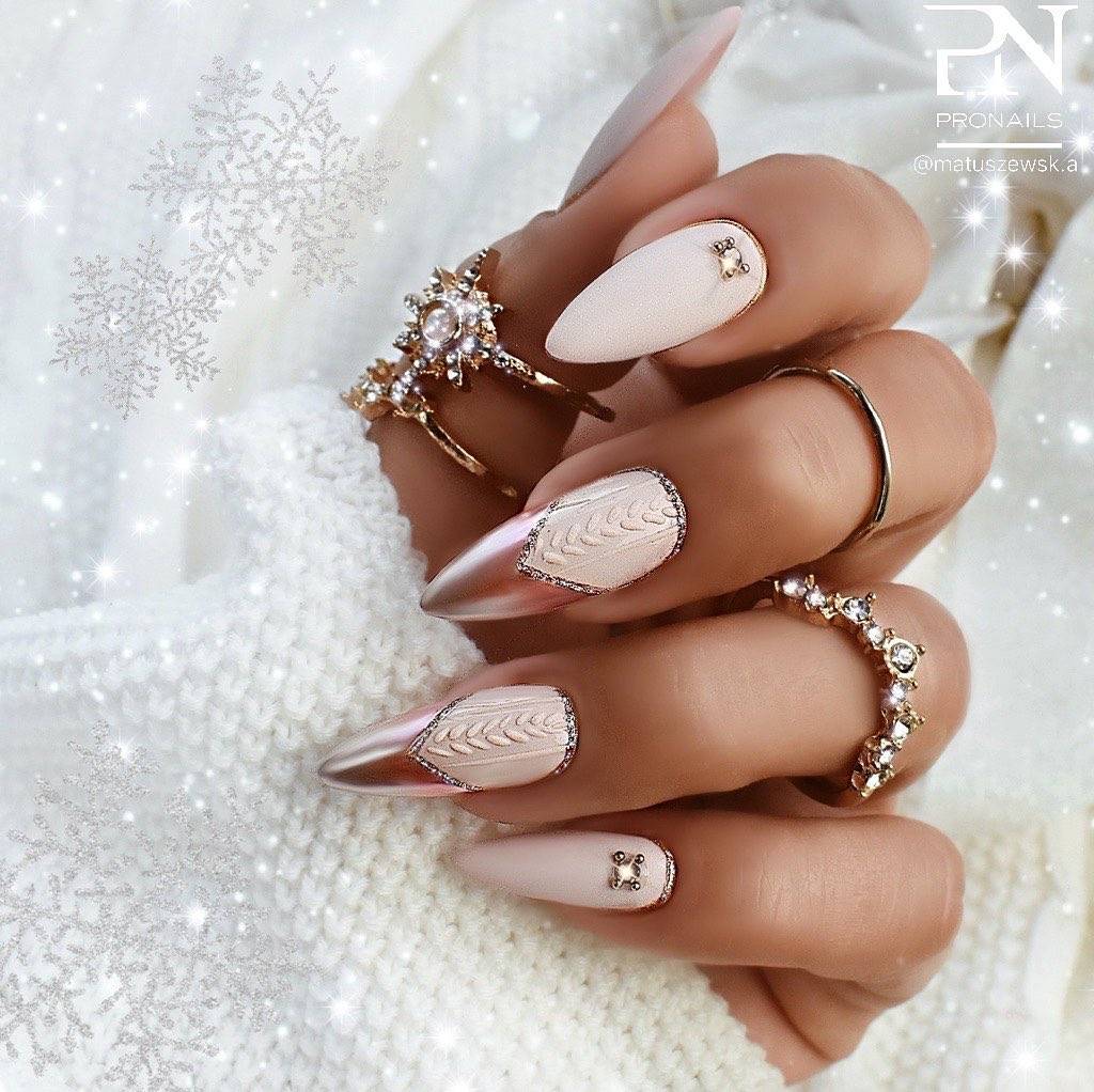 Зимой ногти должны сверкать и блистать во всей красе, особенно если это касается новогоднего маникюра 2021-2022. Традиционно модный вязаный маникюр это сдержанный матовый дизайн, который наилучшим способом подчеркивает эффект свитера.